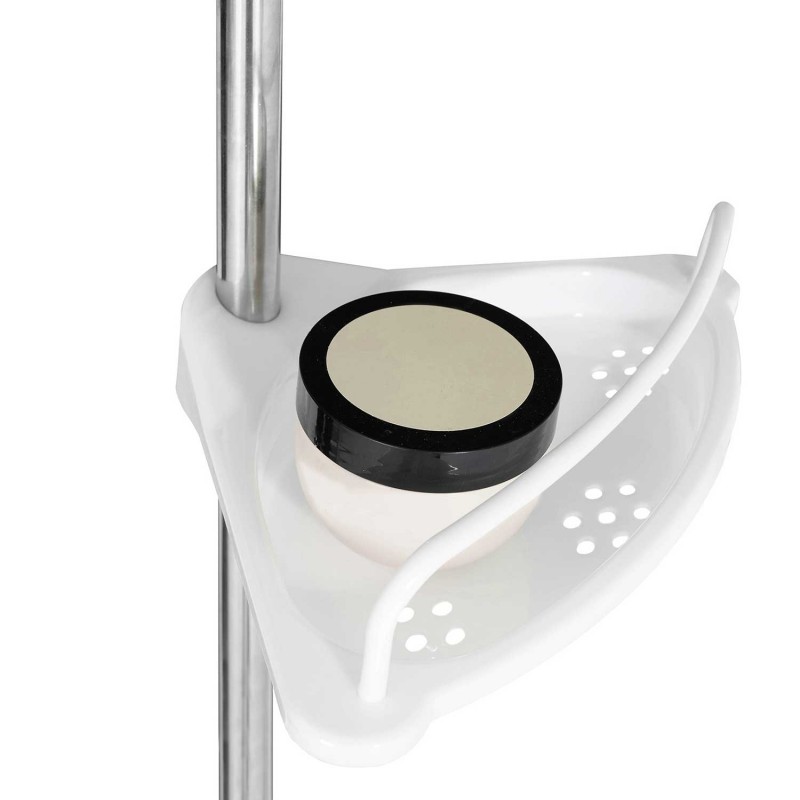 Libellé IDMARKET Etagère d'angle de douche télescopique chromée avec 4 tablettes blanches