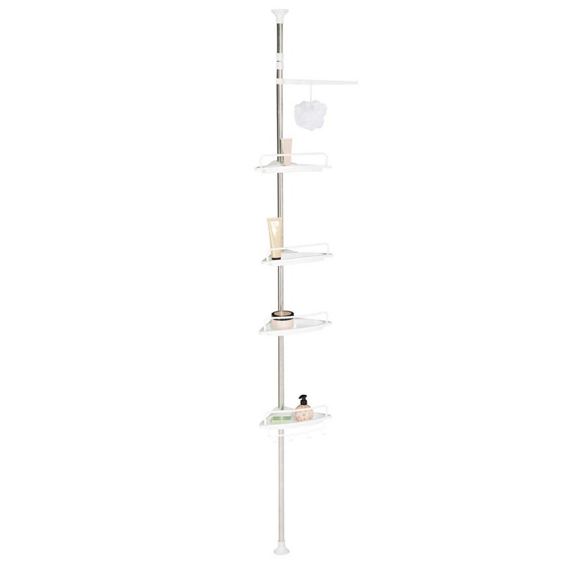 IDMARKET Etagère d'angle de douche télescopique chromée avec 4 tablettes blanches