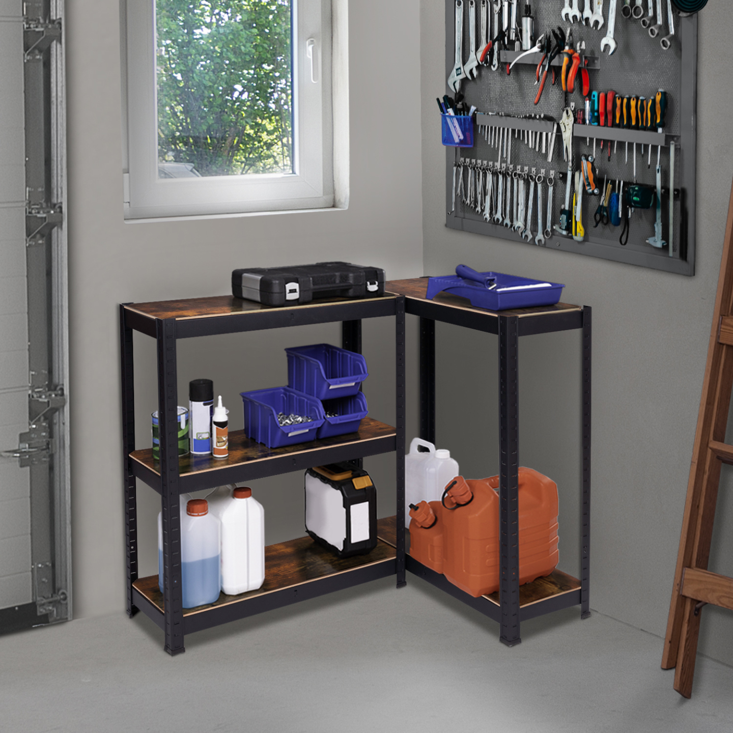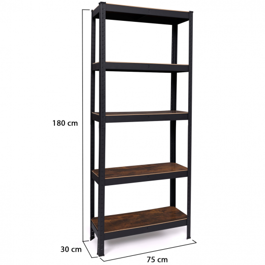 Vous êtes un(e) adepte du rangement mais il vous manque un espace de stockage ? Voici l'étagère qui vous permettra de ranger tous vos outils de bricolage, de jardinage, vos affaires de loisirs,... Grâce à sa structure en acier galvanisé noir et à ses 5 plateaux en bois aggloméré, vous pourrez ranger tous vos objets volumineux et lourds sans aucun risque. Cette étagère charges lourdes saura devenir indispensable pour vous faire gagner de l'espace dans votre garage ou votre atelier en assurant un port de charge allant jusqu'à 650 kg. En plus d'être pratique, cette étagère deviendra également un élément de décoration dans votre buanderie ou dans votre garage grâce à son revêtement effet bois vieilli. Modulable, vous pouvez l'installer façon étagère haute avec ses 5 plateaux ou la transformer en deux étagères distinctes pour former un établi. L'assemblage de l'étagère se fait facilement et sans outils grâce à son système de fixation par clips métalliques. Stable et robuste, cette étagère est composée de croisillons qui assurent votre sécurité et celle de sa charge. Adaptée à tous les espaces, posez-la contre un mur ou alignez plusieurs étagères de garage pour délimiter un espace bricolage, jardinage ou autre. Envie d'une étagère modulable charges lourdes pour stocker vos caisses à outils, bidons de peinture ou autres objets encombrants ? Optez pour cette étagère charges lourdes en acier galvanisé 5 plateaux effet bois vieilli ! Dimensions de l'étagère modulable charges lourdes effet bois vieilliDimensions globales : Longueur 75 cm x largeur 30 cm x Hauteur 180 cmStructure en acier galvanisé noir, épaisseur 0,55 mm5 plateaux en bois aggloméré (MDF revêtement bois aspect vieilli), épaisseur de 5 mmCapacité max : 130 kg par plateau avec une répartition uniforme des charges - total : 650 kgMontage facile et rapide, système de clips et de croisillons pour une meilleure stabilitéCette étagère charges lourdes existe aussi en coloris classique. Découvrez tous nos meubles et éléments de rangement pour le garage disponible sur notre boutique en ligne !