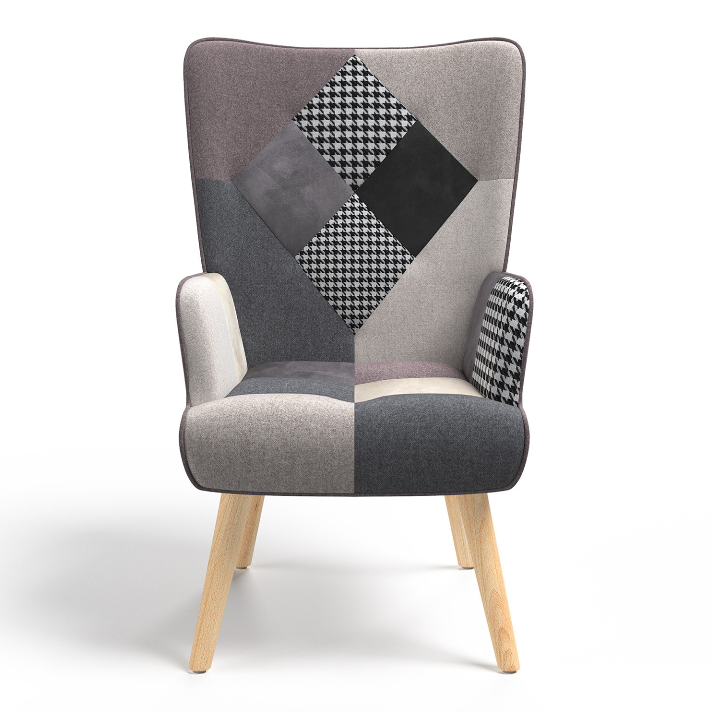 IDMARKET Fauteuil scandinave IVAR en tissu patchwork noir, gris et blanc