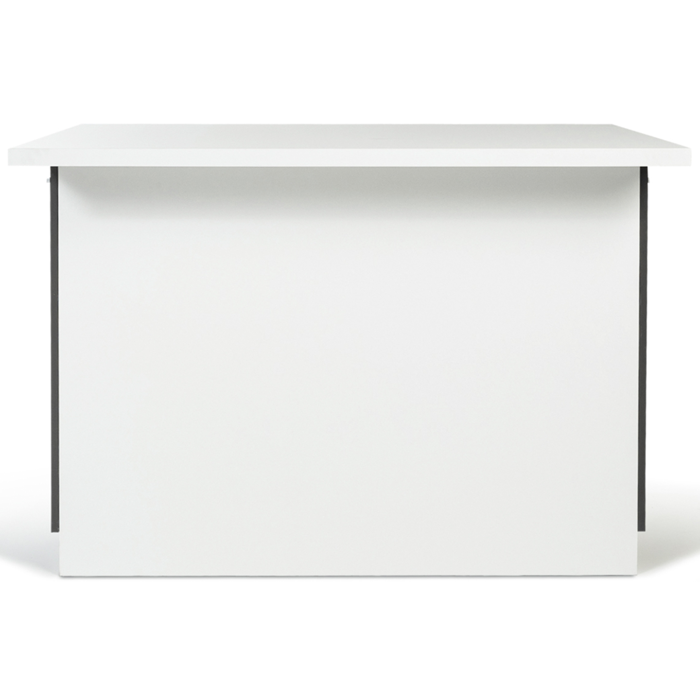 L'espace de votre intérieur, de votre cuisine sera optimisé grâce à notre îlot central avec plan de travail et rangements incorporés en bois coloris blanc et gris !Le design moderne de cet îlot central, ses lignes droites et épurées, ses couleurs sobres tout en contraste, et ses finitions mates lui permettent de s'adapter idéalement à tout type d'intérieur ! Il conférera un aspect net et rangé à votre cuisine !Son format généreux néanmoins compact, peu encombrant, facilite la circulation tout en évitant les pas inutiles au quotidien dans votre pièce de vie. Il structure l'espace de votre cuisine ! Parfait pour les pièces de vie ouvertes et aérées!Cet îlot central de forme rectangulaire classique est idéalement conçu pour recevoir 2 couverts. Ambiance cosy pour des petits-déjeuners à 2 !Son plateau épaisseur 3 cm offre un solide plan de travail large et profond pour poser plats, bouteilles, etc. Ce plan de travail débordant sur un côté a pour avantage de servir de mange-debout et de pouvoir ainsi manger sur le pouce debout ou sur un tabouret de bar !Pratique et fonctionnel, il constitue une véritable solution de rangement rapide pour l'aménagement des petits espaces car il dispose de 2 portes latérales à chaque extrémité aux jolies poignées argentées façon chrome, donnant sur 2 compartiments dotés d'une étagère intermédiaire pour organiser votre rangement ! Discrets, cachés sous le plan de travail, ils représentent un véritable gain de place !Vous bénéficiez ainsi de nombreux espaces de rangement pour vos ustensiles, couverts, vaisselle, bouteilles et condiments ! De plus, vous les conservez à portée de main et vous optimisez l'espace !La structure en PB (panneaux de particules, épaisseur 1,5 cm) lui apporte stabilité et robustesse.Tantôt coin repas, tantôt coin cuisine, avec sa triple fonction table haute/plan de travail/meuble de rangement, il vous fera gagner du temps et de l'espace, et apportera un look contemporain à votre intérieur !Optez sans tarder pour cette installation tendance et conviviale à la fois fonctionnelle et décorative !Dimensions de l'îlot central de cuisine blanc et grisDimensions globales : Longueur 120 cm x largeur 80 cm x Hauteur 90 cmdimensions placards : L. 56 x l. 54 x H. 78 cmNettoyage rapide et entretien facile avec chiffon humide douxÀ monter soi-mêmeProduit vendu seul, sans les tabouretsDécouvrez également l'ensemble de nos meubles et éléments de cuisine sur notre boutique en ligne !