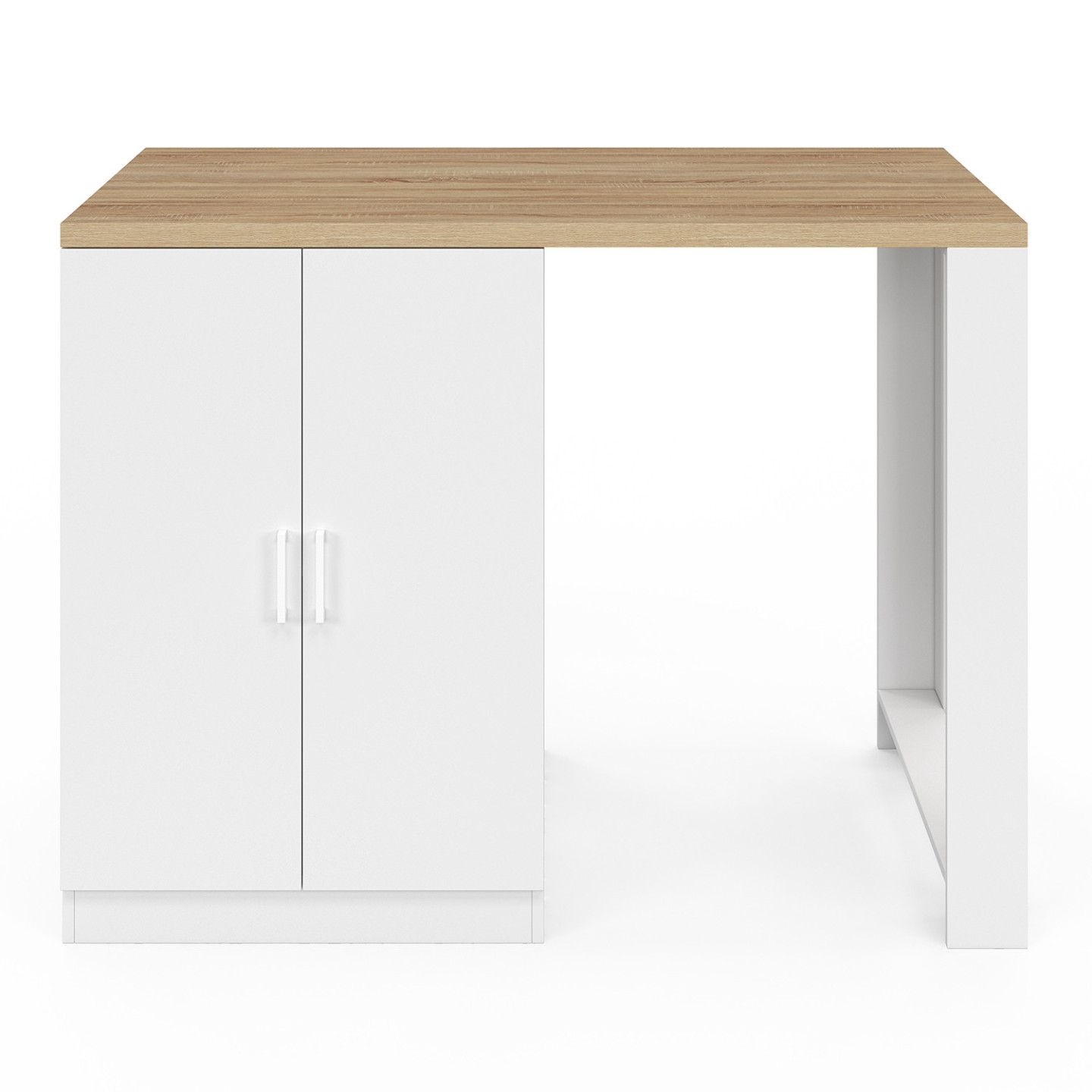 Optimisez et organisez l'espace de votre cuisine grâce à notre îlot central LINO avec doubles placards intégrés au coloris bois blanc et imitation hêtre !Le design moderne de cet îlot central, ses lignes droites et épurées, ses couleurs sobres et ses finitions mates lui permettent de s'adapter idéalement à tout type d'intérieur ! Il conférera un aspect net et rangé à votre cuisine !Son format généreux et néanmoins compact, peu encombrant, facilite la circulation tout en évitant les pas inutiles au quotidien dans votre pièce de vie. Il structure l'espace de votre cuisine ! Parfait pour les pièces de vie ouvertes et aérées.Avec son grand plateau épais de 3 cm, cette table de bar vous offrira un plan de travail supplémentaire pour cuisiner. Son plateau de 120 cm de long permet de glisser en-dessous des tabourets de bar et accueillir ainsi 2 personnes ! Ultra fonctionnel, ce meuble de bar dispose de deux placards intégrés, un de chaque côté : l'un avec une façade vitrée pour exposer votre vaisselle ou objets déco et l'autre avec une façade pleine blanche pour un rangement discret.Sa structure robuste en PB lui assure stabilité et robustesse pour un usage au quotidien ! Optez sans tarder pour cet îlot tendance et convivial à la fois fonctionnel et décoratif !Dimensions de l'îlot central LINODimensions globales : Longueur 120 cm x largeur 70 cm x Hauteur 90 cmDimensions intérieures des placards : L. 57 x l. 30 x H. 79 cm2 placards 2 portes avec étagère ajustable sur 3 positions (+/- 6 cm)portes avec étagère ajustable sur 3 positions (+/- 6 cm)Poignées : 11 x 2 cmEspace vide : 50 cmLargeur des pieds : 10 cmÉpaisseur plan de travail : 3 cmMatériaux : Particules de bois (PB) Coloris : bois et blancÀ monter soi-mêmeProduit vendu seul, sans les tabouretsRetrouvez l'ensemble de nos meubles de cuisine sur notre boutique en ligne !