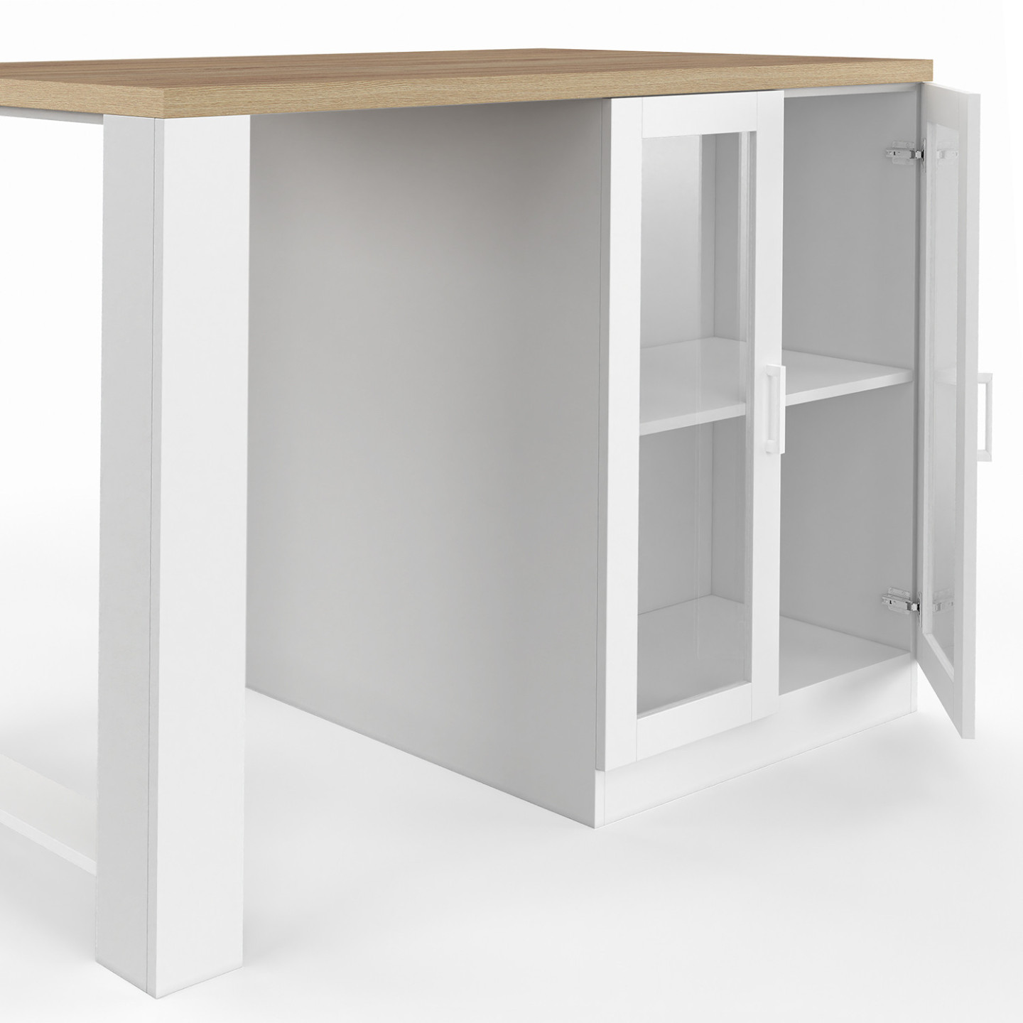 IDMARKET Ilot central LINO 2 personnes bois blanc et plan de travail façon hêtre et portes vitrées