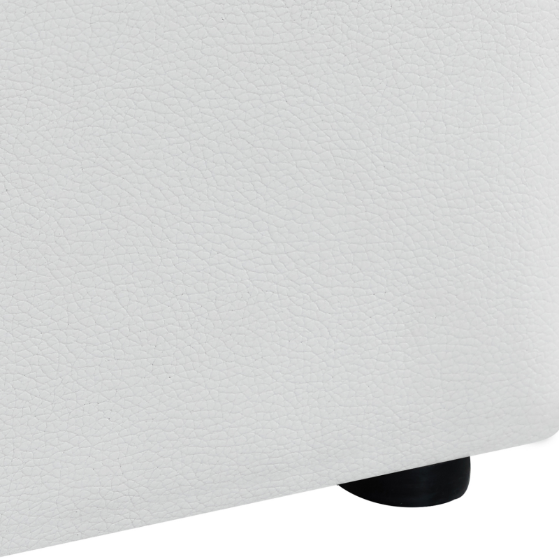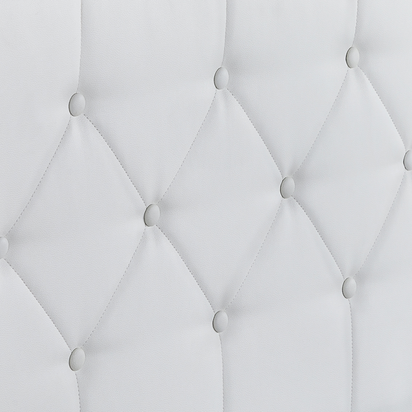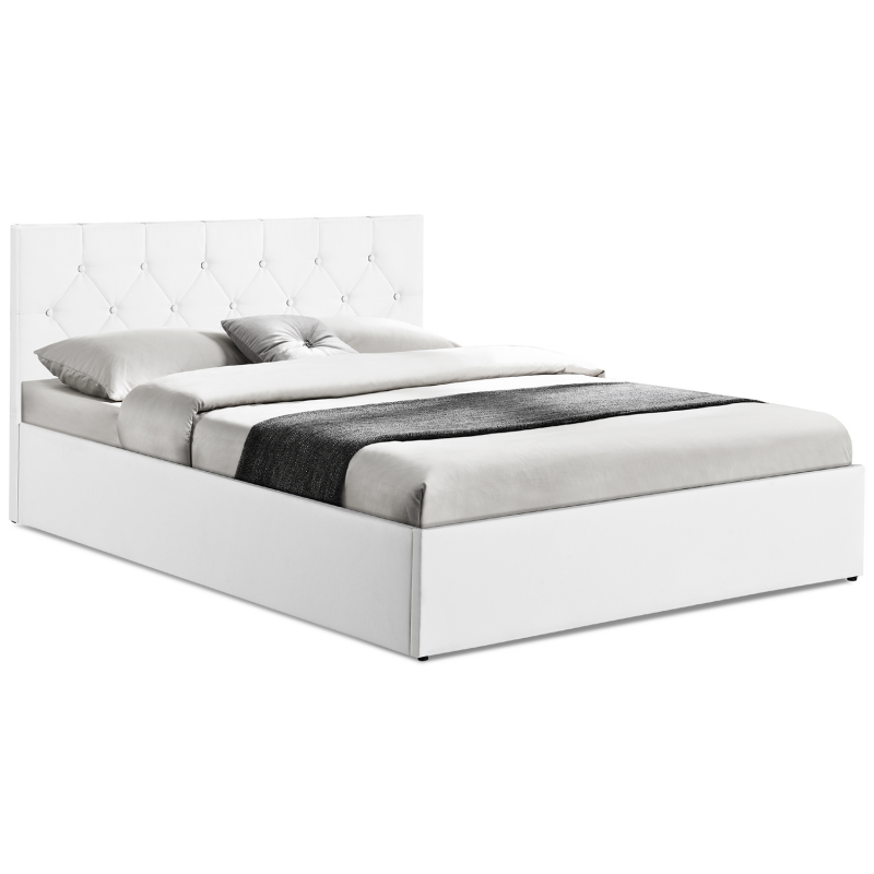 Donnez une touche contemporaine à votre chambre à coucher avec le lit coffre double avec sommier et tête de lit AUSTIN 140 x 190 CM ! Et donnez une seconde vie à votre espace de nuit! En plus d'avoir des finitions soignées avec son revêtement polyuréthane résistant coloris blanc, la structure du lit, pratique et fonctionnelle, abrite sous son sommier un grand coffre de rangement. Doté d'une jolie tête de lit travaillée, au capitonnage en forme de losange, celle-ci habille élégamment votre mur tout en vous apportant le confort et le soutien nécessaires à la qualité de votre repos et de votre sommeil.Un gain de temps et d'espace ! Fini les oreillers empilés, laissez place à une chambre rangée en toute circonstance avec le lit AUSTIN à rangement intégré. Pour votre propre chambre à coucher ou la chambre d'amis afin de recevoir famille ou invités dans une chambre ordonnée. Fonctionnel, vous pouvez y ranger draps, couettes, édredons, et vêtements volumineux ou pourquoi pas des jeux de société !Le coffre, de la dimension du lit, est facile à ouvrir et à fermer en un instant : le sommier est relevable en un tour de main grâce au mécanisme de vérins de levage.Stable et robuste, doté de pieds intégrés à la structure et d'une barre transversale sous sommier avec 2 pieds en métal centraux.Sommier à 24 lattes en bois tout confort. Zone lombaire renforcée grâce au resserrement des lattes pour garantir un confort optimal - Facilite l'aération du matelas, et apporte flexibilité au couchage.Stylé et pratique à la fois, sa couleur passe-partout s'adapte à tous les intérieurs.Dimensions du lit coffre AUSTIN 140 x 190 CM- Dimensions hors tout : Longueur 201 CM x largeur 151 CM x Hauteur 89 CM environ- Dimensions tête de lit : Longueur 151 x Hauteur 87,5 x Épaisseur 7 CM- Hauteur du cadre de lit : 30 CM - Épaisseur 3,5 CM- 6 pieds : 4 en bois et 2 en métal- Hauteur des pieds : 1,5 CM- Dimensions standard pour un matelas 140 x 190 CM 2 places- Nettoyage facile avec chiffon humide- Matelas non fourni*Produit non livrable en CorseCe modèle de lit AUSTIN est disponible dans d'autres coloris et d'autres dimensions :- Lit coffre AUSTIN PVC gris avec sommier 140 x 190 CM- Lit coffre AUSTIN PVC gris avec sommier 160 x 200 CM- Lit coffre AUSTIN PVC blanc avec sommier 160 x 200 CM- Lit coffre AUSTIN PVC noir avec sommier 140 x 190 CMRetrouvez l'ensemble de notre gamme de lits sur notre boutique en ligne !