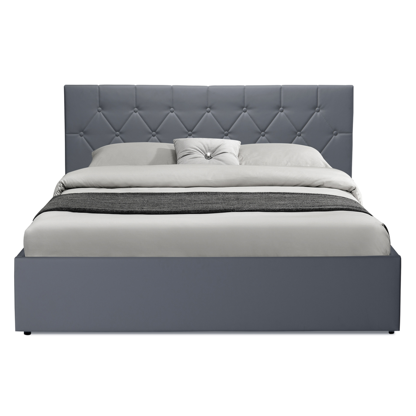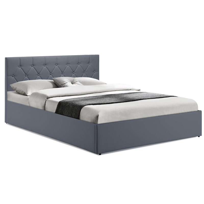 Donnez une touche contemporaine à votre chambre à coucher avec le lit coffre double avec sommier et tête de lit AUSTIN 160 x 200 CM ! En plus d'avoir des finitions soignées grâce à son revêtement polyuréthane résistant coloris gris, la structure du lit, pratique et fonctionnelle, abrite sous son sommier un grand coffre de rangement.Le lit est surmonté d'une jolie tête de lit travaillée, au capitonnage en forme de losange. Celle-ci habille élégamment votre mur tout en vous apportant le confort et le soutien nécessaires à la qualité de votre repos et de votre sommeil.Un gain de temps et d'espace ! Fini les oreillers empilés, laissez place à une chambre rangée en toute circonstance avec le lit AUSTIN à rangement intégré. Pour votre propre chambre à coucher ou la chambre d'amis, ce lit sera parfait lorsque vous recevrez de la famille ou des invités. Fonctionnel, vous pouvez y ranger draps, couettes, édredons, et vêtements volumineux, ou pourquoi pas des jeux de société !Le coffre, de la dimension du lit, est facile à ouvrir et à fermer en un instant : le sommier est relevable en un tour de main grâce au mécanisme de vérins de levage.Stable et robuste, le lit est doté de pieds intégrés à la structure et d'une barre transversale sous le sommier soutenu par 2 pieds en métal.Le sommier à 24 lattes en bois est tout confort. La zone lombaire est renforcée grâce au resserrement des lattes pour garantir un confort optimal. Cette structure facilite l'aération du matelas et apporte de la flexibilité au couchage.Stylé et pratique à la fois, sa couleur passe-partout s'adapte à tous les intérieurs.Dimensions du lit coffre AUSTIN gris 160 x 200 CMDimensions globales : Longueur 210 cm x largeur 165.5 cm x Hauteur 88.5 cmDimensions tête de lit : L. 151 x l. 7 x H. 89 cmHauteur des pieds : 1,5 cmMatériaux : MDF et revêtement en PVCColoris : GrisDimensions standard pour un matelas 160 x 200 cm 2 placesNettoyage facile avec chiffon humideMatelas non fourni*Produit non livrable en CorseCe modèle de lit AUSTIN est disponible dans d'autres coloris et d'autres dimensions :- Lit coffre AUSTIN PVC gris avec sommier 140 x 190 CM- Lit coffre AUSTIN PVC blanc avec sommier 140 x 190 CM- Lit coffre AUSTIN PVC blanc avec sommier 160 x 200 CM- Lit coffre AUSTIN PVC noir avec sommier 140 x 190 CMRetrouvez l'ensemble de notre gamme de lits sur notre boutique en ligne !
