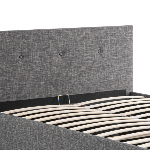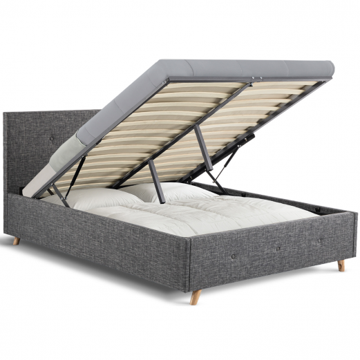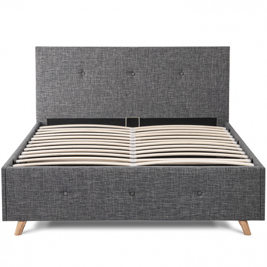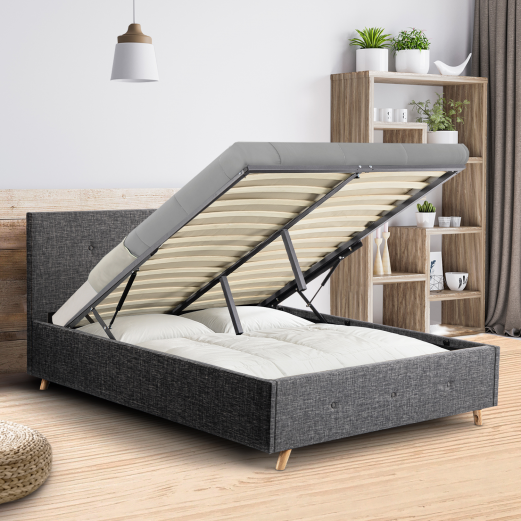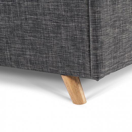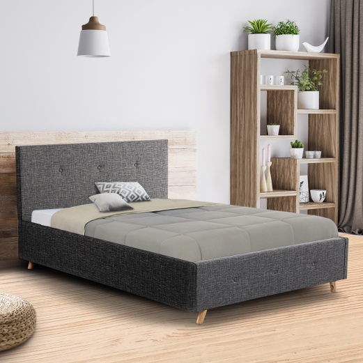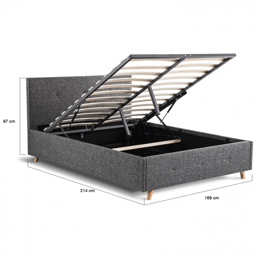 Décorez et aménagez votre chambre avec une touche venue tout droit de Scandinavie ! Offrez-vous ce lit double LULEA 160x200 cm ultra-confortable et créez une véritable ambiance cocooning dans votre chambre.Son design scandinave aux finitions sophistiquées habillera votre pièce avec élégance. Doté d'une jolie tête de lit en tissu 100% polyester façon lin suédine coloris gris anthracite, le capitonnage 3 boutons rappelle celui du cadre de lit et apporte une touche de volupté.En plus d'avoir des finitions soignées, la structure du lit, pratique et fonctionnelle, abrite sous son sommier un coffre de rangement.Le coffre, de la dimension du lit, est facile à ouvrir et à fermer en un instant : le sommier est relevable en un tour de main grâce au mécanisme de vérins de levage.Doublement fonctionnel, vous pouvez y ranger draps, couettes, édredons, coussins, et vêtements volumineux. Un gain de temps et d'espace ! Fini les oreillers empilés, laissez place à une chambre rangée en toute circonstance avec le lit Lulea à rangement intégré. Stylé et pratique à la fois, pour votre propre chambre à coucher ou la chambre d'amis afin de recevoir famille ou invités dans une chambre ordonnée.Son contour de lit tout en tissu gris anthracite et ses 4 pieds bois (hauteur 8,5 cm) inclinés lui confèrent un style sobre et moderne. Le capitonnage lui donne un aspect harmonieux.Stable et robuste, sa structure en bois MDF est renforcée par une barre transversale sous le sommier avec renfort en métal.Livré avec son sommier à 24 lattes en bois tout confort, la zone lombaire est renforcée grâce au resserrement des lattes pour garantir un confort optimal. Sa forme ergonomique facilite l'aération du matelas et apporte flexibilité au couchage.Dimensions du lit coffre LULEA gris anthraciteDimensions globales : Longueur 214 cm x largeur 169 cm x Hauteur 106 cmDimensions tête de lit : H. 106 x ép. 6 cmHauteur du cadre de lit : 52 cmHauteur des pieds : 8,5 cmDimensions standard pour un matelas 160 x 200 cm 2 placesNettoyage facile avec chiffon humideMatelas non fourniFond du coffre en tissu type feutrine*Produit non livrable en CorseDécouvrez également tous nos modèles de lits doubles sur notre boutique en ligne !