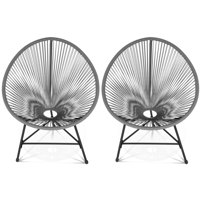 | Libellé | IDMARKET Lot de 2 fauteuils de jardin IZMIR gris design oeuf avec cordage plastique |