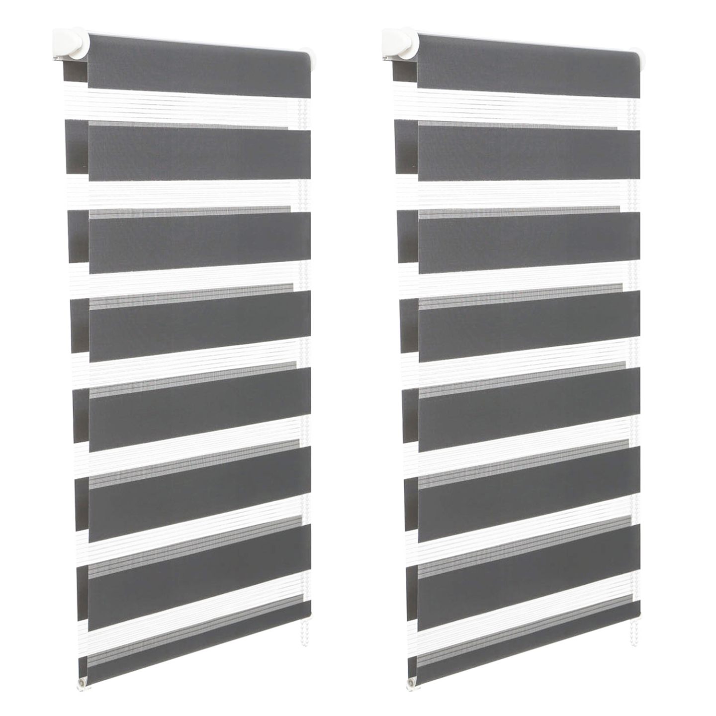 IDMARKET Lot de 2 stores enrouleurs zébrés jour nuit gris