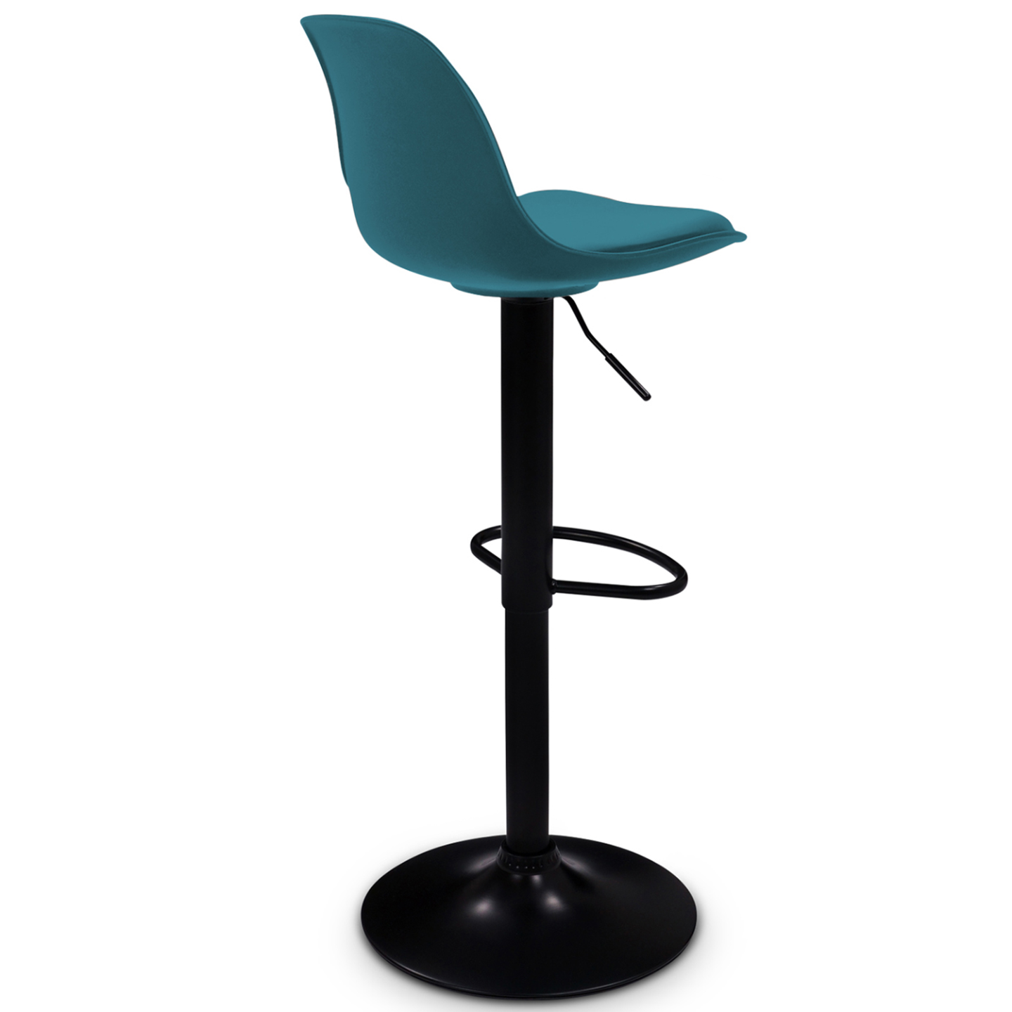 À la recherche de tabourets de bar au design contemporain ? Optez pour ce lot de 2 tabourets de bar KARL au design bleu canard pied noir et apportez une ambiance moderne et chaleureuse à votre intérieur. Réglables en hauteur grâce à leur vérin à gaz, les tabourets pourront s'adapter à votre plan de travail comme à votre bar ou à votre table haute. Leur socle rond de 38,5 cm de diamètre et leur pied réglable assurent une bonne stabilité à votre assise.Pratiques grâce à leur large repose-pieds en métal, les tabourets KARL bleu canard pivotent également à 360° pour un maximum de mobilité. Ultra-confortables, les tabourets de bar sont munis d'un coussin rembourré intégré à l'assise et d'un dossier courbé en polypropylène. Confortables, esthétiques et robustes, ces tabourets offriront à votre cuisine une touche de modernité. Alors n'hésitez plus et craquez pour ce lot de 2 tabourets de bar KARL design bleu canard avec pied noir. Dimensions d'un tabouret de bar KARL bleu pied noirDimensions totales : Longueur 39 cm x largeur 42 cm x Hauteur 104 cm (dossier compris)Dimensions de l'assise : L. 38 x pr. 33 x H. 20 cmHauteur de l'assise réglable : 63 à 84 cmMatériaux : revêtement en polypropylène, pied en métalColoris : bleu canard, pied noirVendu en lot de 2 tabouretsÀ monter soi-mêmeNos tabourets de bar KARL pied noir existe aussi en différents coloris : - Lot de 2 tabourets de bar KARL design blanc pied noir- Lot de 2 tabourets de bar KARL design gris pied noir- Lot de 2 tabourets de bar KARL design noir pied noir- Lot de 2 tabourets de bar KARL design patchworks pied noirDécouvrez l'ensemble de nos tabourets de bar sur notre boutique en ligne.