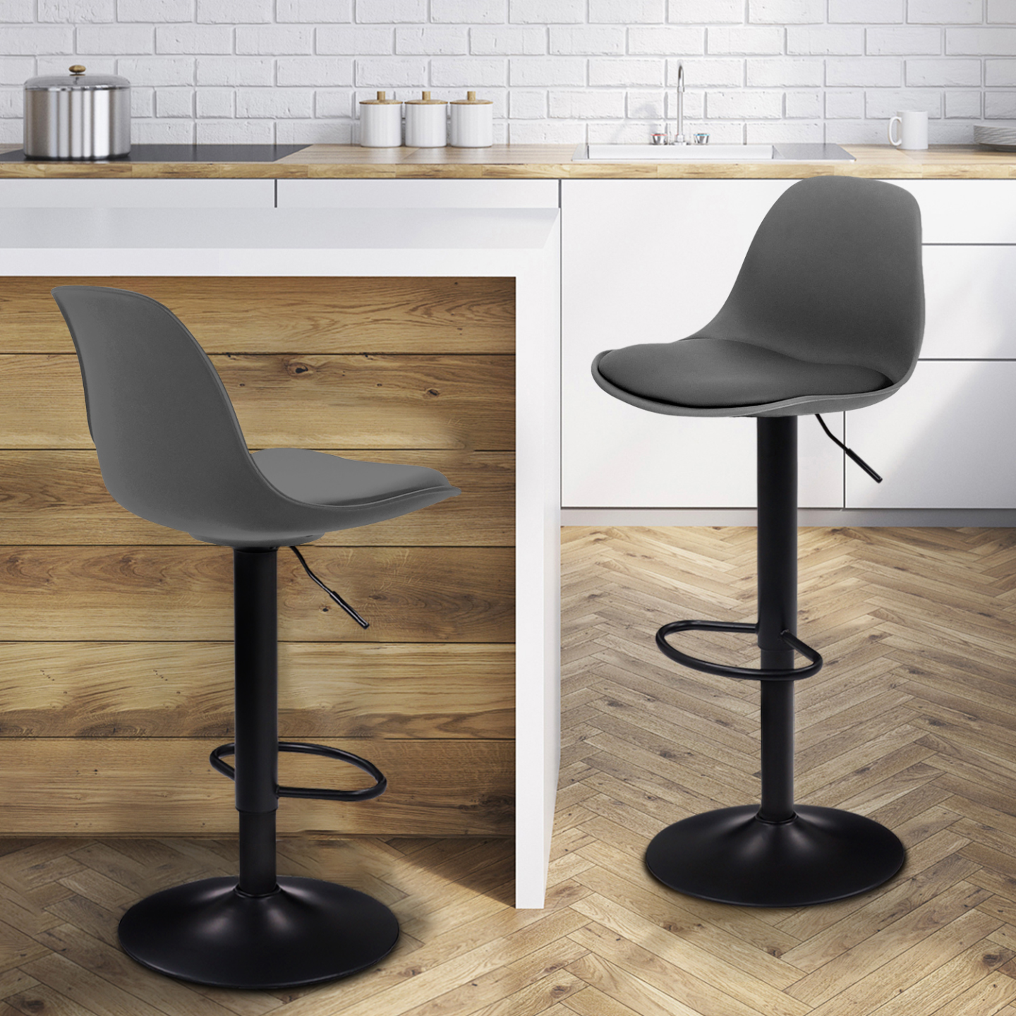 Envie d'une ambiance moderne et chaleureuse dans votre cuisine ? Découvrez ce lot de 2 tabourets de bar KARL au design gris pied noir.