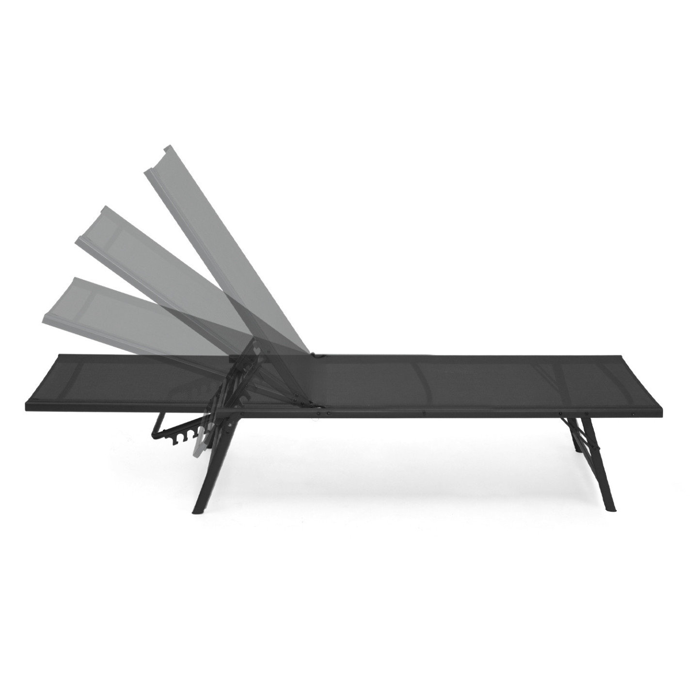 IDMARKET Lot de 2 transats de jardin inclinables KAILUA en acier noir et toile noire
