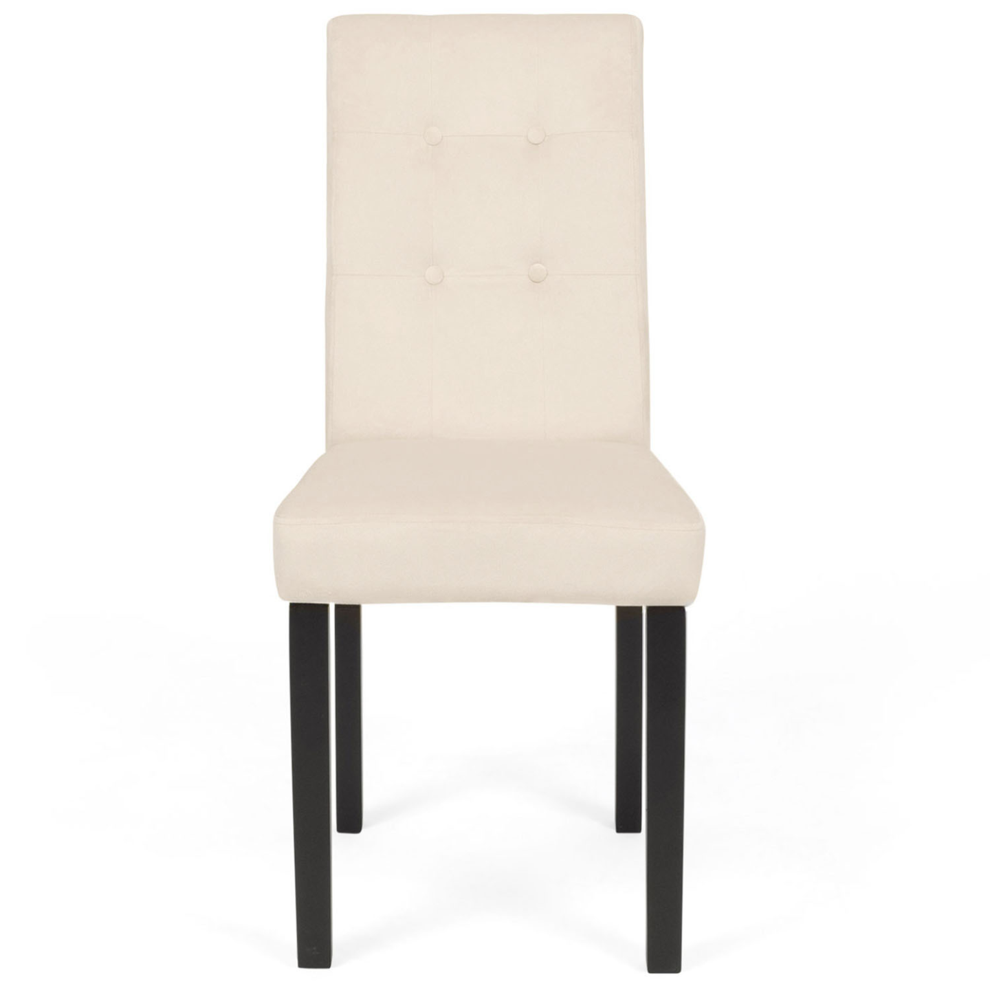 Vous êtes à la recherche d'un lot de 4 chaises confortables et design ? Craquez pour nos chaises capitonnées en velours beige POLGA à prix mini !Leur design aux lignes épurées apportera une ambiance à la fois cosy et moderne à tout type d'intérieur ! Idéales dans une salle à manger ou dans un salon, ces chaises offrent une touche de décoration contemporaine et chic à votre pièce de vie. Ces 4 chaises offrent une assise moelleuse et un dossier capitonné confortable rembourrés en mousse pour un maximum de confort. Leur structure et leurs 4 pieds en bois noirs garantissent une vraie robustesse et une réelle stabilité. Leur revêtement est en velours beige pour un toucher agréable et cocooning.Choisissez des chaises design contemporain en velours beige à petit prix pour habiller votre intérieur avec style !Dimensions du lot de 4 chaises capitonnées en velours beigeDimensions globales : Longueur 43 cm x largeur 61 cm x Hauteur 94 cmMatériaux : Structure et pieds en bois - revêtement en veloursColoris : beige Dimensions assise : L. 43 x l. 43 x H. 47 cmDimensions pieds : L. 4 x l. 4 x H. 38 cmÉpaisseur de l'assise : 9 cmÉpaisseur du dossier : 6 cmÀ monter soi-mêmeCe modèle de lot de 4 chaises capitonnées en velours existe également en coloris gris foncé.Retrouvez nos autres coloris en tissu disponibles sur notre boutique en ligne :- Lot de 4 chaises POLGA capitonnées beiges- Lot de 4 chaises POLGA capitonnées gris anthracite- Lot de 4 chaises POLGA capitonnées grises