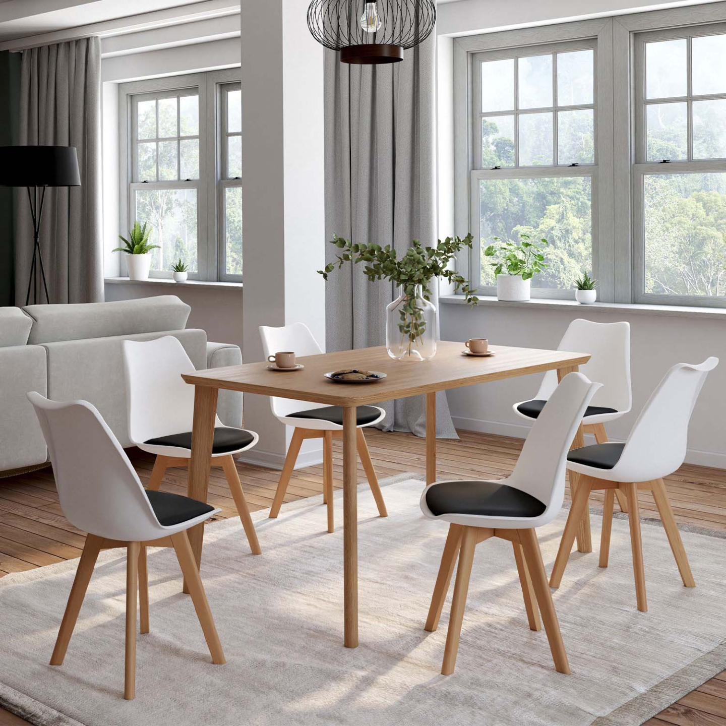 | Libellé | IDMARKET Lot de 6 chaises scandinaves SARA bicolore blanches coussin noir |