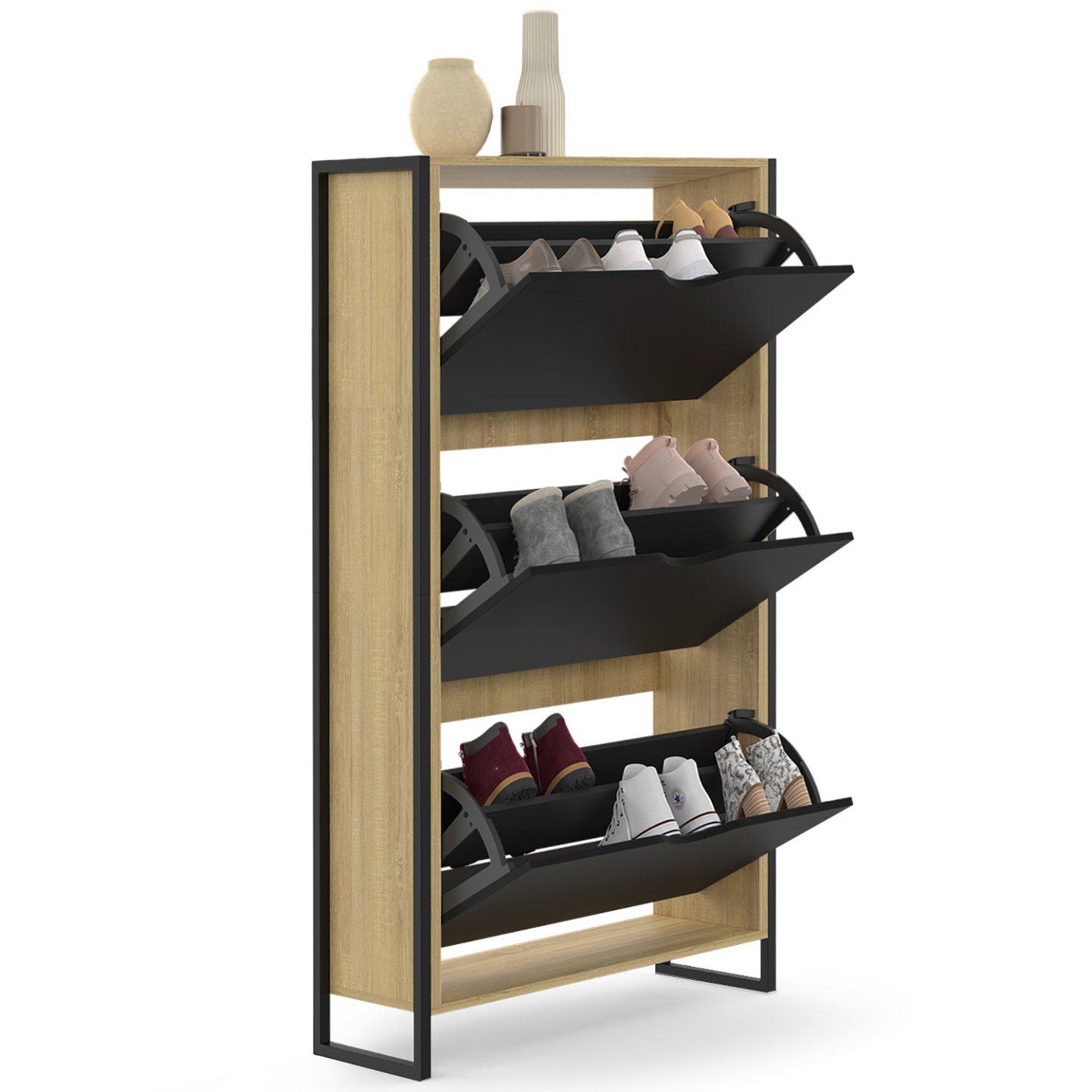 | Libellé | IDMARKET Meuble à chaussures 18 paires BOSTON 3 portes design industriel |