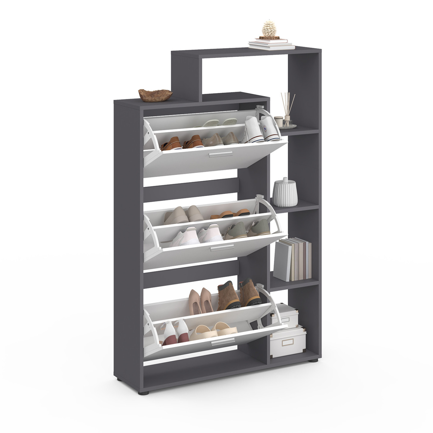 IDMARKET Meuble à chaussures 18 paires KLARK gris 3 portes blanches avec étagère