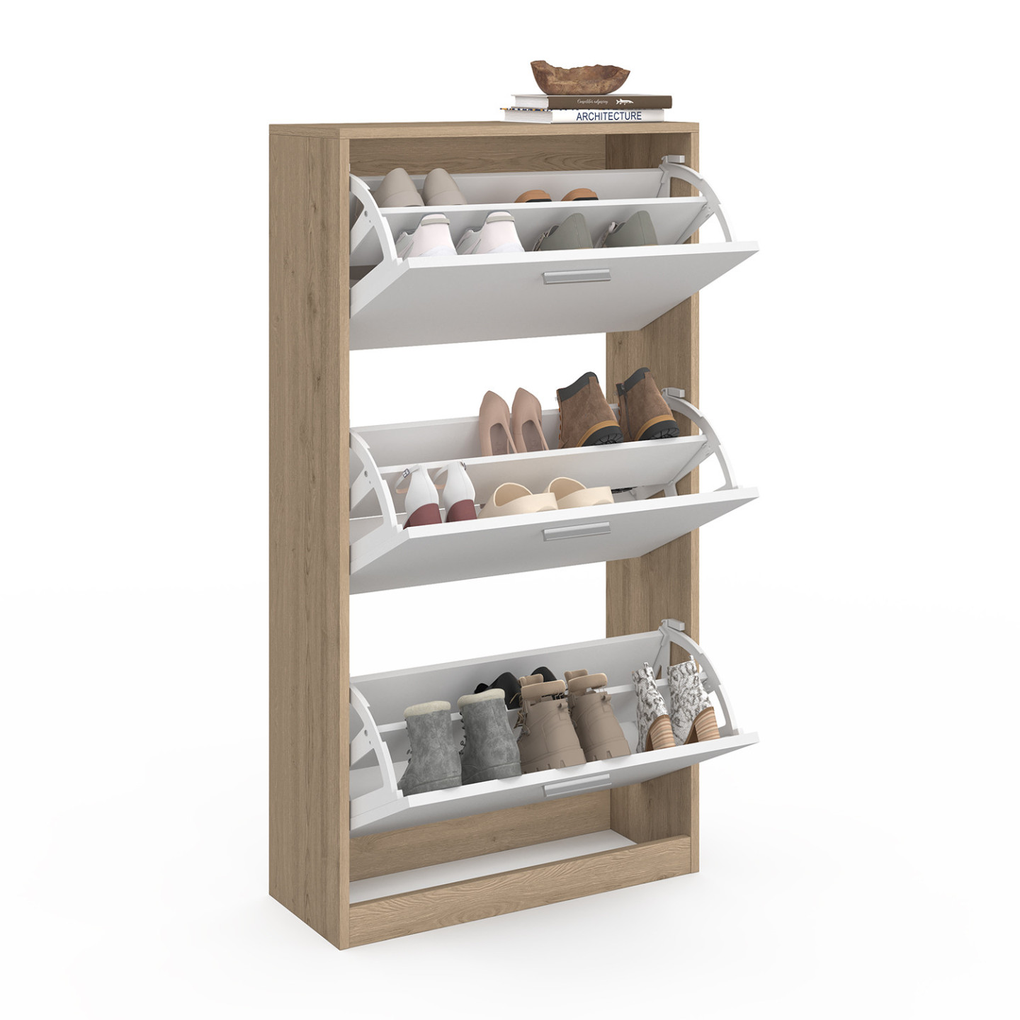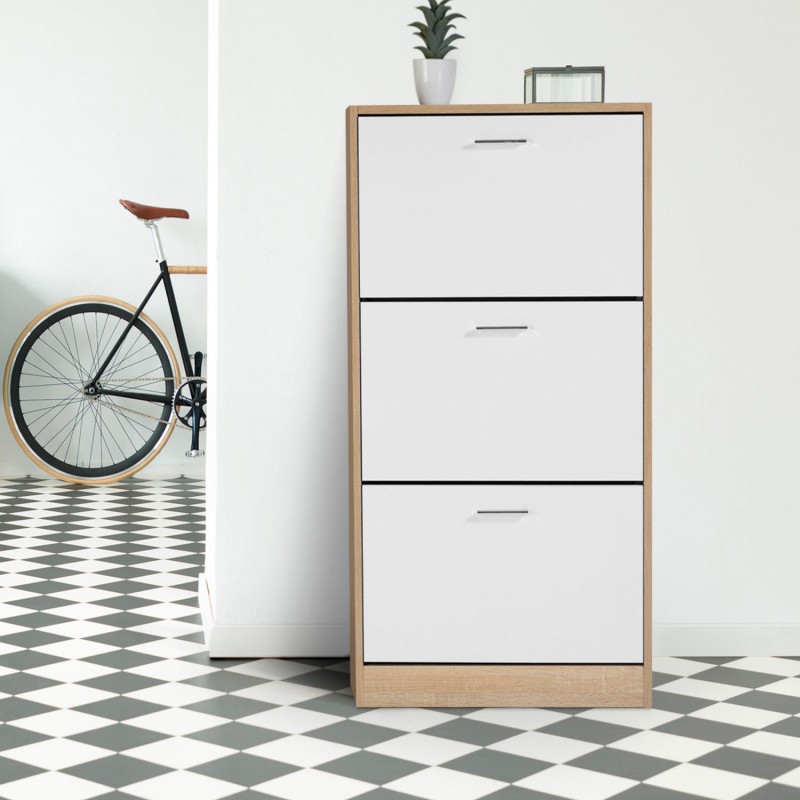 | Libellé | IDMARKET Meuble à chaussures 18 paires KLARK imitation hêtre 3 portes blanches |