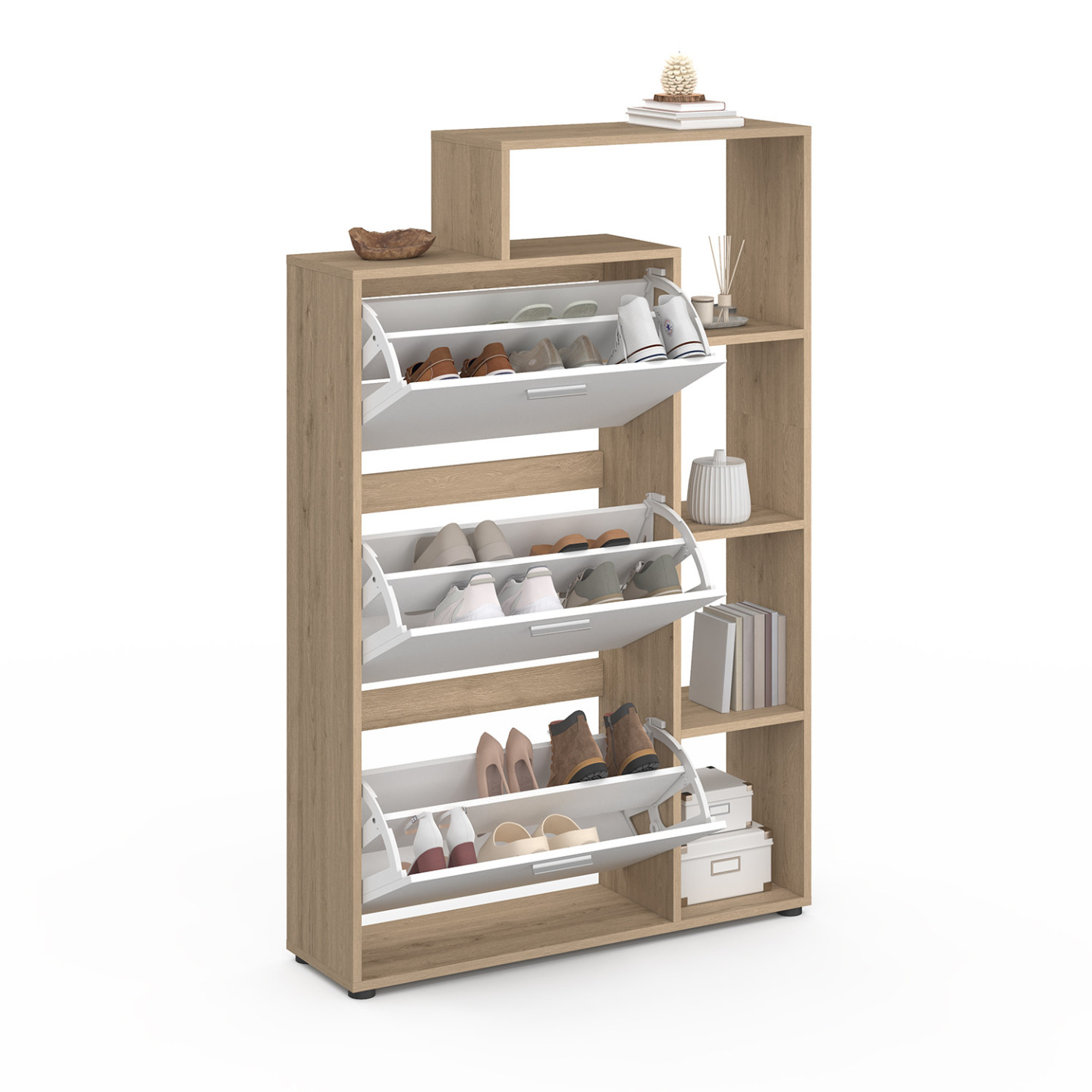 IDMARKET Meuble à chaussures 18 paires KLARK imitation hêtre 3 portes blanches avec étagère