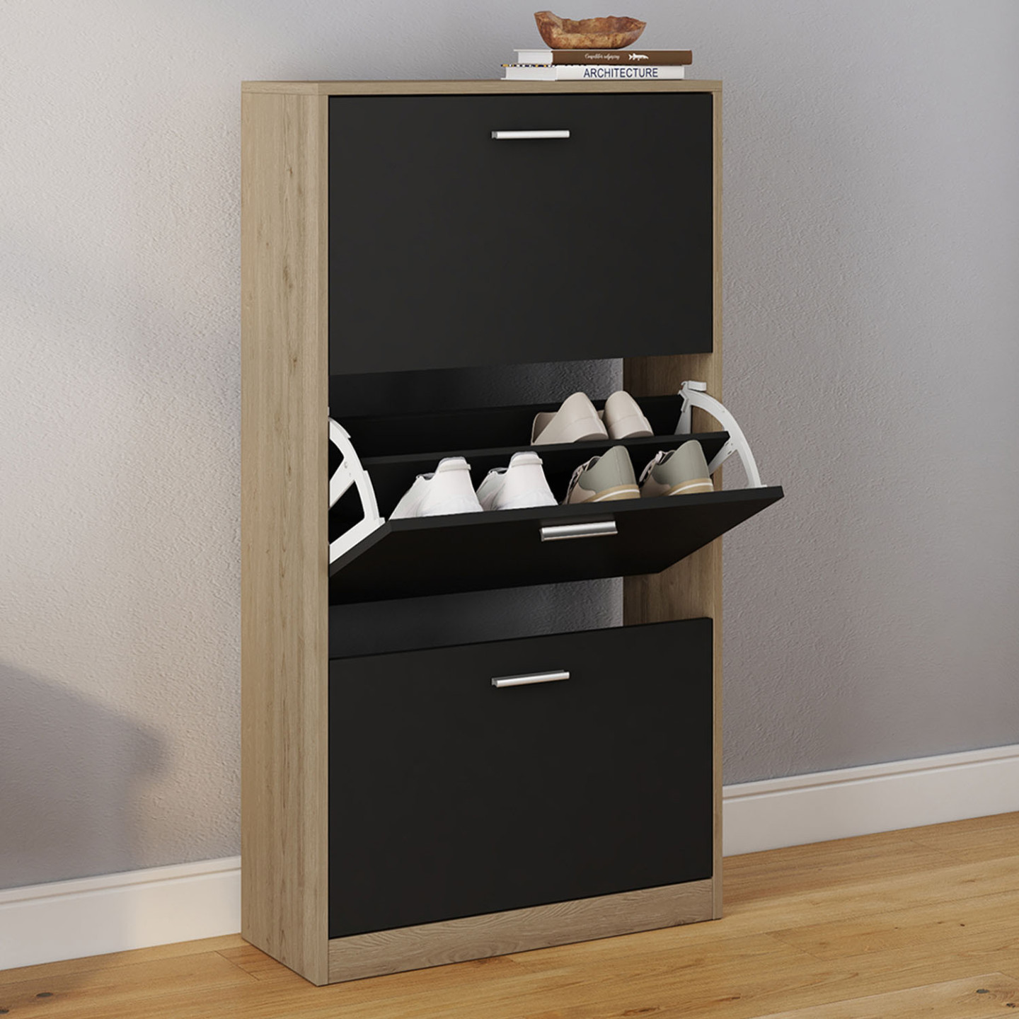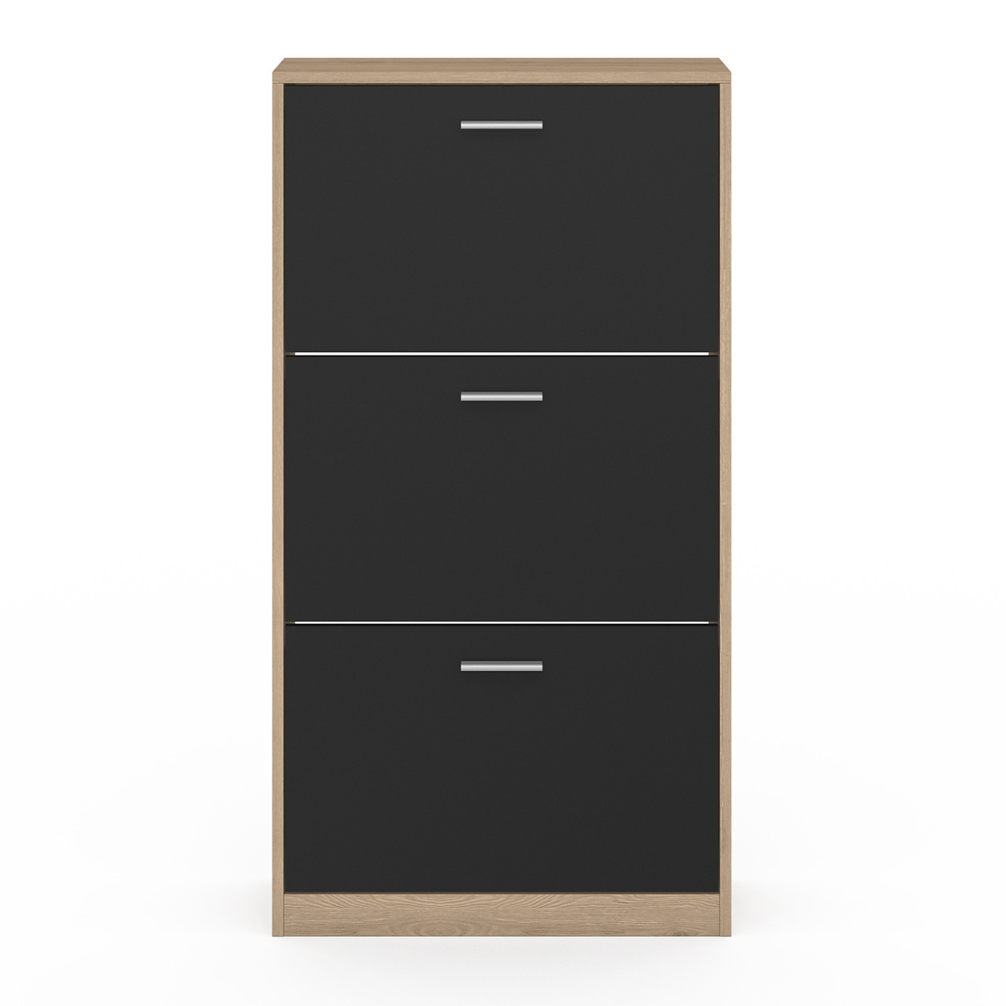 IDMARKET Meuble à chaussures 18 paires KLARK imitation hêtre 3 portes noires