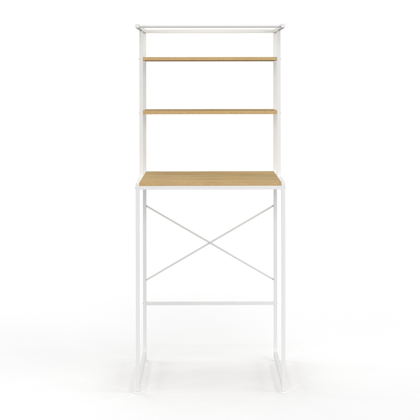 Gardez une buanderie toujours bien ordonnée grâce au meuble dessus machine à laver avec étagères DETROIT bois clair et blanc ! Son style moderne et son côté bi-matière créeront une ambiance chaleureuse et tendance dans votre buanderie ou dans votre salle d'eau. Spécial petits espaces, il s'adaptera aux dimensions standards d'une machine à laver et vous offrira un rangement tout en hauteur pour un gain de place optimal ! Profitez des 2 étagères pour garder à portée de main l'essentiel pour vos machines ou pour mettre en avant une petite touche de décoration. Le plan de travail 62 x 60 cm vous permettra d'entreposer et d'organiser tous vos produits d'entretien du linge ainsi que vos serviettes de bain par exemple. Vous n'avez pas envie de sortir votre séchoir à linge qui prend de la place dans votre intérieur ? Profitez de la barre de penderie en hauteur pour y suspendre quelques vêtements sur cintres ou encore un torchon ou une petite serviette. Ultra pratique, cette barre de penderie d'une longueur de 61,5 cm est l'élément astucieux qui fait la différence !La structure du meuble en panneaux de particules mélaminés et en métal lui apporte stabilité et solidité. Pour une touche déco et fonctionnelle, vous pouvez compter sur le design épuré et les couleurs naturelles de ce meuble avec étagères. Faire le linge ne sera plus une corvée pour vous grâce à ce meuble dessus machine à laver bois et métal qui optimisera le rangement et facilitera votre quotidien ! Dimensions du meuble dessus machine à laver DETROIT Dimensions globales : Longueur 66 cm x largeur 60 cm x Hauteur 162 cmMatériaux : panneaux de particules de bois mélaminés et métalHauteur du plan de travail : 92,5 cmEspace pour machine à laver : L. 62 x l. 58 x H. 89 cmHauteur du tube de renfort à l'arrière : 26 cmLongueur de la barre de penderie : 61,5 cmDimensions étagère du haut : L. 62 x l. 30 cmDimensions étagère centrale : L. 62 x l. 30 x H. 23,5 cmDimensions du plan de travail : L. 62 x l. 60 x H. 29 cmColoris : bois et blancKit de fixation mural inclus et visserie incluseÀ fixer au mur pour éviter tout risque de basculementÀ monter soi-mêmeRetrouvez l'ensemble de nos meubles WC ainsi que notre collection industrielle sur notre boutique en ligne.