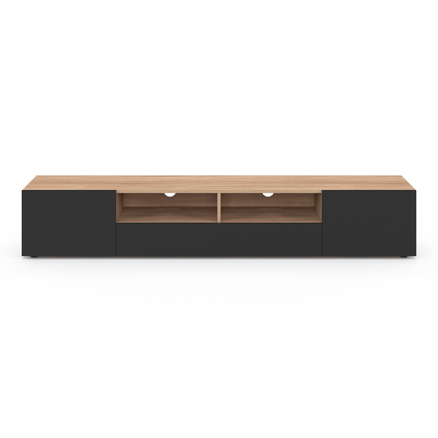 IDMARKET Meuble TV ELI bois façon hêtre portes noires