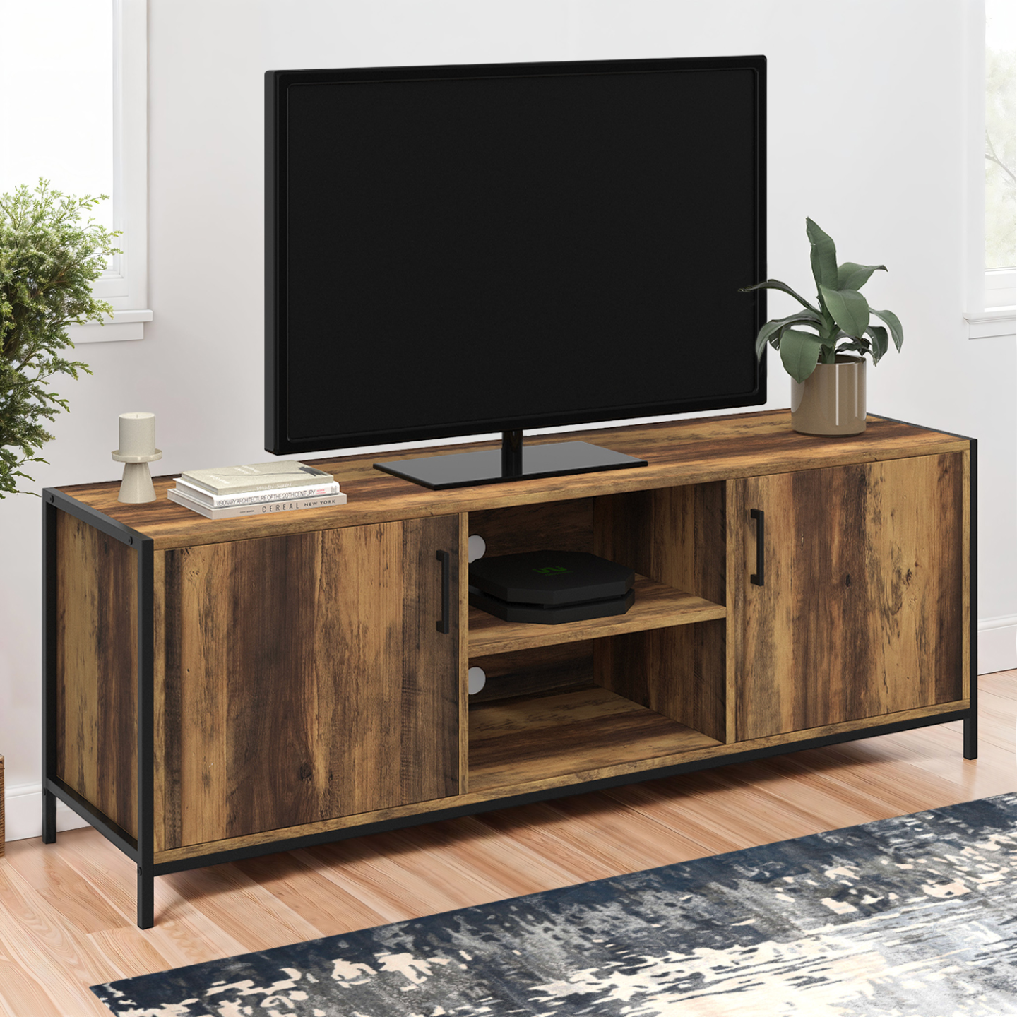 IDMARKET Meuble TV HAWKINS 2 portes bois foncé design industriel