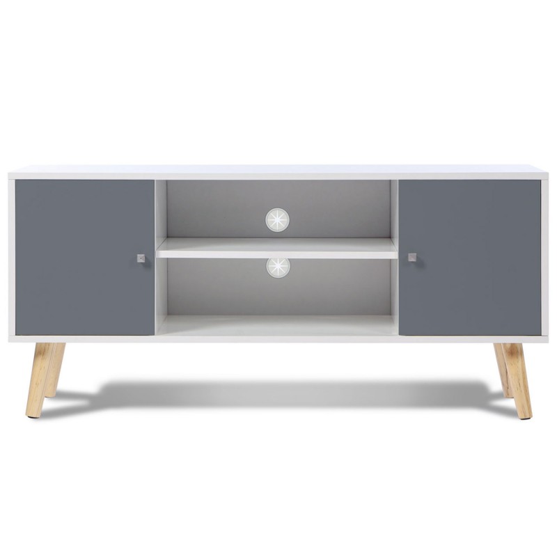 IDMARKET Meuble TV scandinave 113 CM EFFIE 2 portes bois blanc et gris