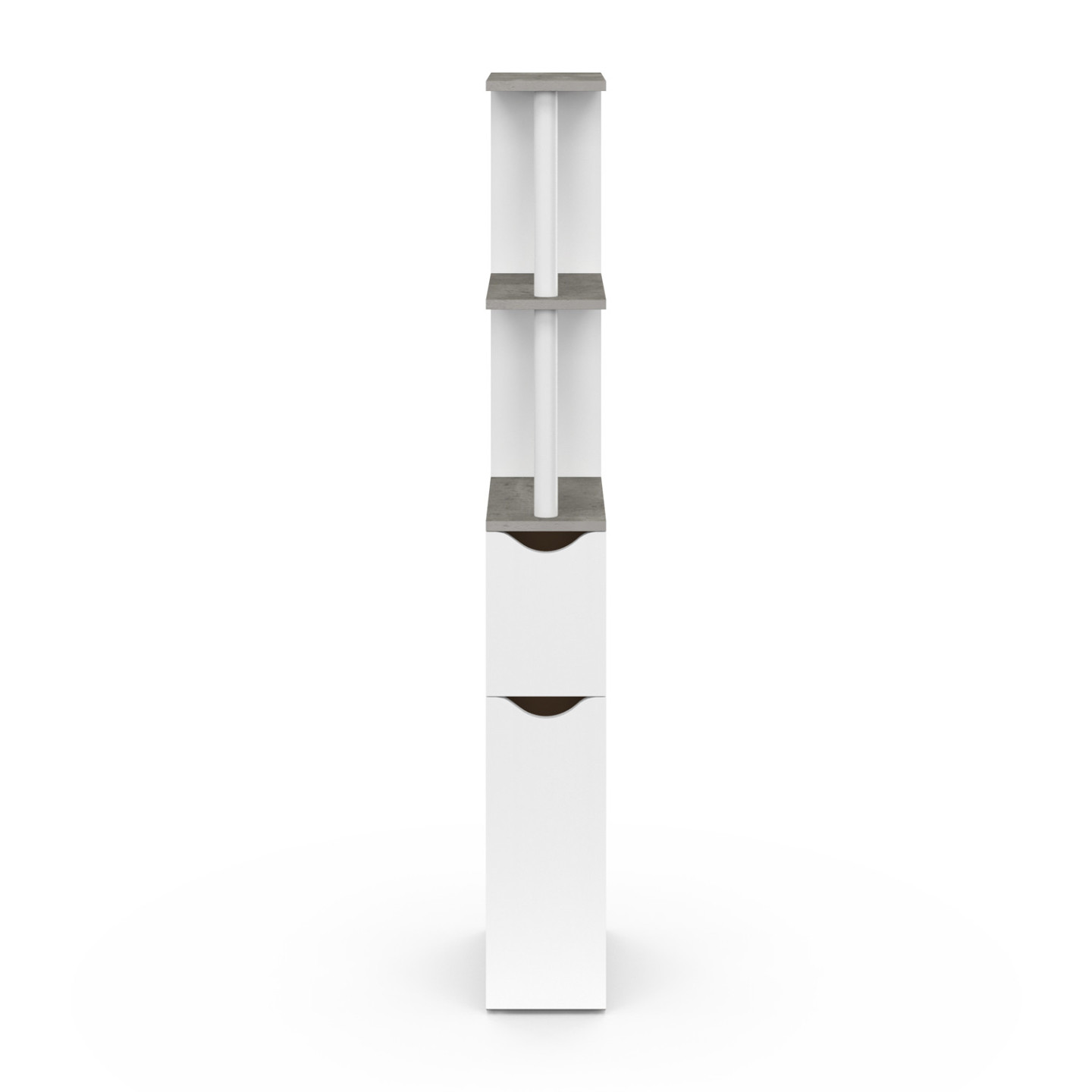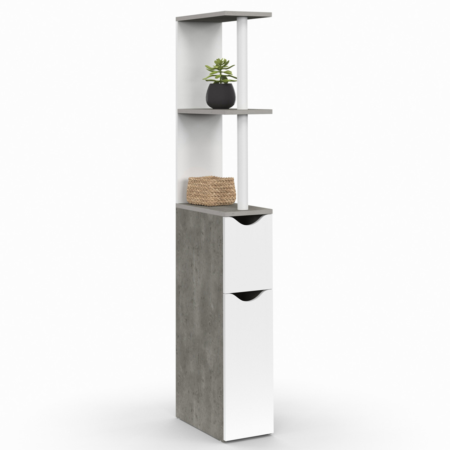 Optimisez le rangement dans vos WC ou dans votre salle de bain grâce à ce meuble au design contemporain et son effet béton tendance ! Ultra pratique, ce meuble WILLY vous permettra de ranger tout ce dont vous avez besoin à portée de main.Son design contemporain, associé aux coloris blanc et gris du meuble offre un look moderne en un clin d'œil ! Ce meuble gain de place permet de nombreuses possibilités de rangement pour tous vos produits d'hygiène ou d'entretien sans encombrer votre pièce.Compact et fonctionnel, il est équipé de 2 portes et de 3 niveaux de rangement ouverts avec 2 étagères pour poser quelques éléments de décoration.Sa partie inférieure est composée de 2 placards : un grand d'une hauteur de 38 cm et un plus petit d'une hauteur de 19 cm qui vous permettront de ranger les produits les moins esthétiques ou les plus fragiles à l'abri des regards.Spécial petits espaces, il est aussi idéal pour aménager votre buanderie ou une arrière-cuisine. Alors n'hésitez plus et craquez pour ce meuble WC 2 portes WILLY pour un gain de place assuré à prix mini ! Dimensions du meuble WC WILLY 2 portesDimensions globales : Longueur 15,5 cm x largeur 30 cm x Hauteur 118,5 cmHauteur porte du haut : 19 cmHauteur porte du bas : 38 cmMatériaux : Panneaux de particules de bois À monter soi-mêmeRetrouvez l'ensemble de nos accessoires et meubles de salle de bain sur notre boutique en ligne.