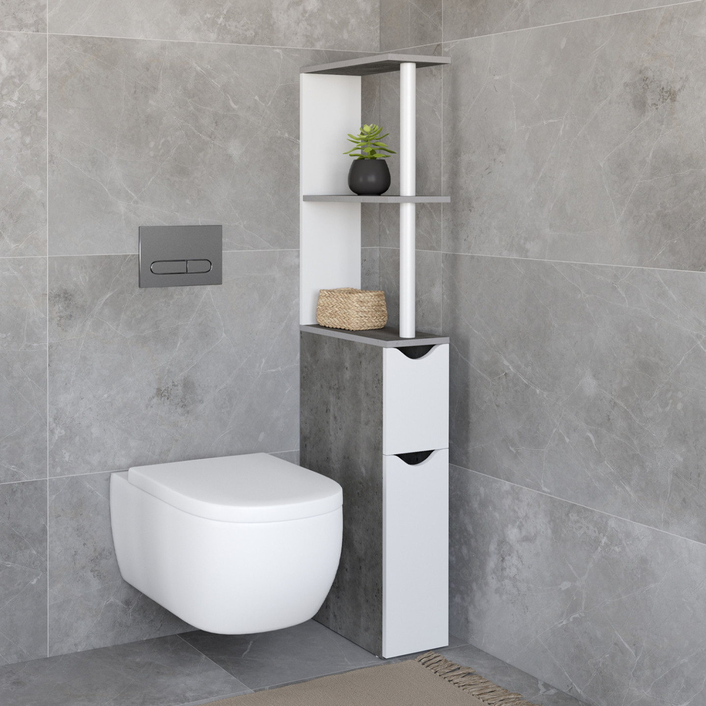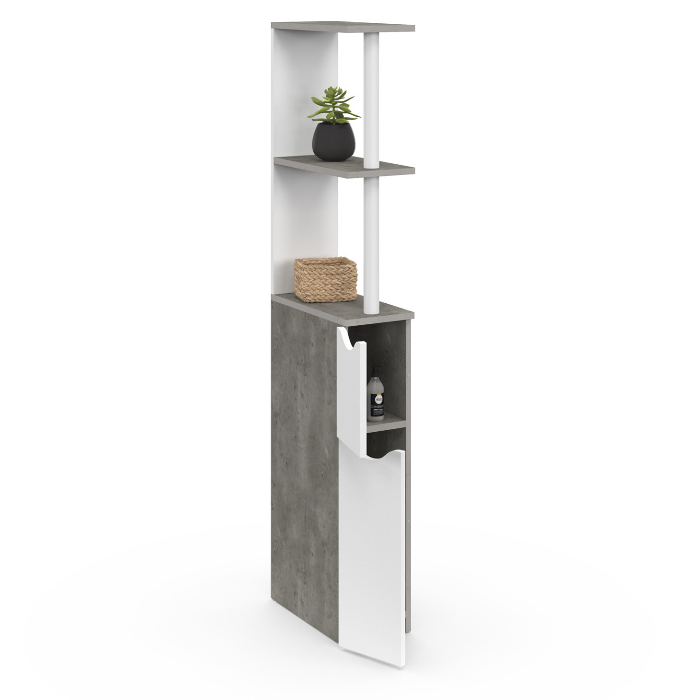 IDMARKET Meuble WC étagère WILLY bois gain de place pour toilette 2 portes blanc et effet béton