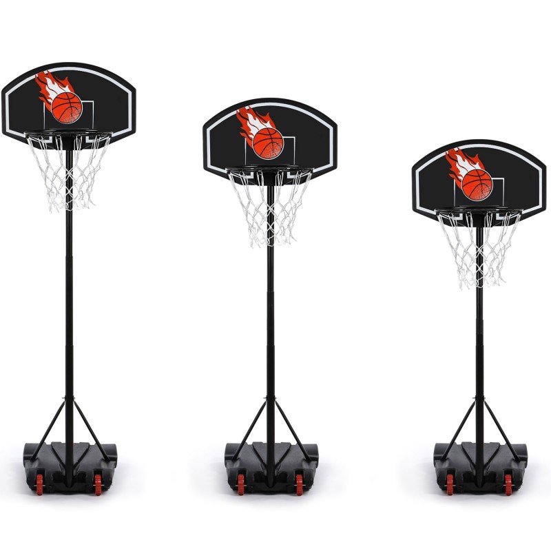 Optez pour ce superbe panier de basket réglable en hauteur de 1,38 à 2,5 m et offrez-vous des matchs entre amis et des entraînement en solo réussis ! Réglable en quelques secondes, ce panier est fait pour toute la famille, aussi bien pour les enfants, les ados et les adultes ! Parfaitement mobile grâce à ces grandes roulettes diamètre 10 cm, il se déplace facilement et convient aussi bien en usage intérieur qu'extérieur sans avoir besoin de le fixer au mur! Ce panier de basketball à domicile permettra d'améliorer le niveau de jeu de tous les passionnés de la maison dans un vrai esprit convivial ! Sa base solide 74x55x13cm à remplir de sable ou d'eau lui confère robustesse et stabilité. Lancers francs et dunks n'auront plus de secrets avec son panneau résistant 71x45x2cm et son cercle acier de 45cm de diamètre doté d'un filet en nylon.Base et panneau en plastique.
