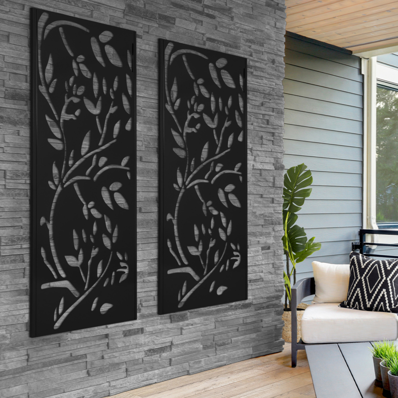 Vous êtes à la recherche d'un panneau de séparation extérieur pour délimiter un espace de tranquillité dans votre jardin, terrasse ou balcon ? Ne cherchez plus, nous avons LA solution idéale avec le panneau décoratif universel EVE !Grâce à sa structure en métal ajouré, ce claustra a été conçu pour s'adapter à un environnement extérieur. Il ne nécessite aucun entretien et résiste aux intempéries. De plus, ses 2 pieds en métal vous offrent stabilité et robustesseSes jolis motifs floraux et son coloris noir mat ultra élégant vous permettront de créer un coin cosy et chaleureux en un clin d'œil ! Polyvalent, ce panneau décoratif métal s'utilise de multiples façons : à fixer au sol de votre terrasse ou de votre pelouse, à positionner entre les planches de vos panneaux en bois composite ou à installer directement contre un mur pour un look ultra moderne ! Et pour créer une vraie séparation, n'hésitez pas à installer plusieurs panneaux à la suite.Astuce déco : Ultra tendance en ce moment, pensez à faire grimper vos plantes le long de votre panneau pour un effet végétal garanti. Transformez l'atmosphère de votre jardin grâce à ce panneau décoratif universel noir mat et profitez de moments conviviaux avec vos proches ! Dimensions du panneau décoratif EVE noir mat- Dimensions totales : largeur 50 CM x Hauteur 150 CM x épaisseur 1,8 CM- Dimensions des pieds : Longueur 40 CM x largeur 5 CM x Hauteur 4 MM- Épaisseur de la structure : 18 x 18 x 1 MM- Épaisseur du métal : 0,8 x 1,8 MM- Couleur : noir mat- À monter soi-mêmeCe modèle convient aux panneaux occultants disposant d'une épaisseur de lame de 1,8 CM