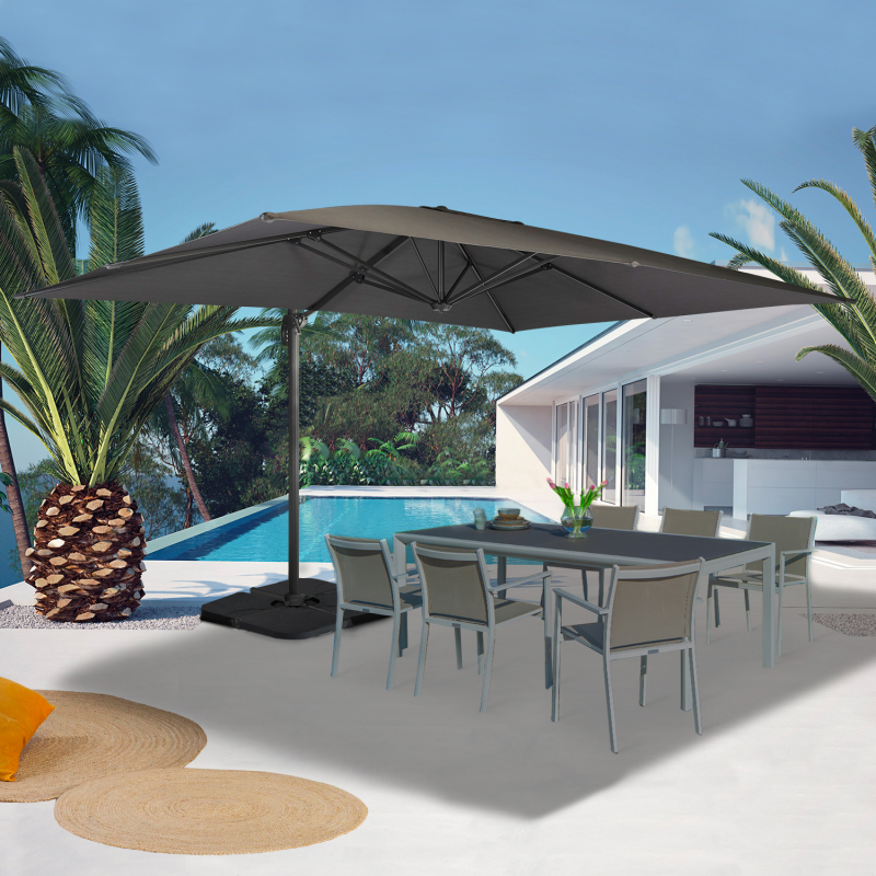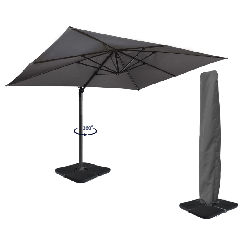 | Libellé | IDMARKET Parasol déporté 360 CALVI gris 3x4 M avec 4 dalles et housse |