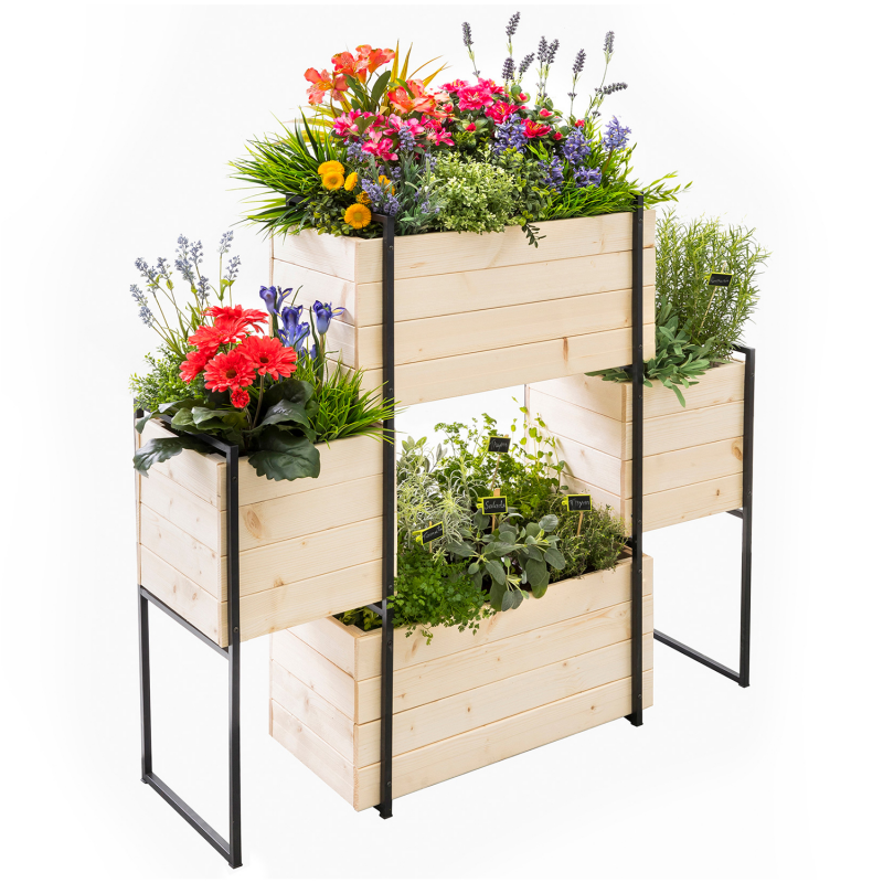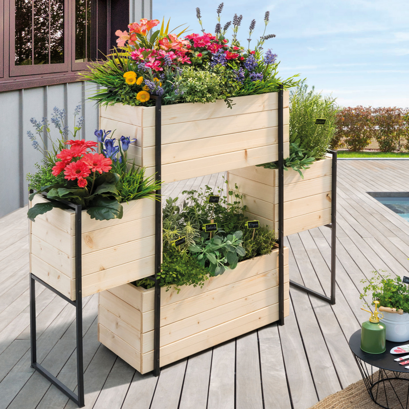 Libellé IDMARKET Potager SALLY 4 bacs bois et métal jardinière escalier