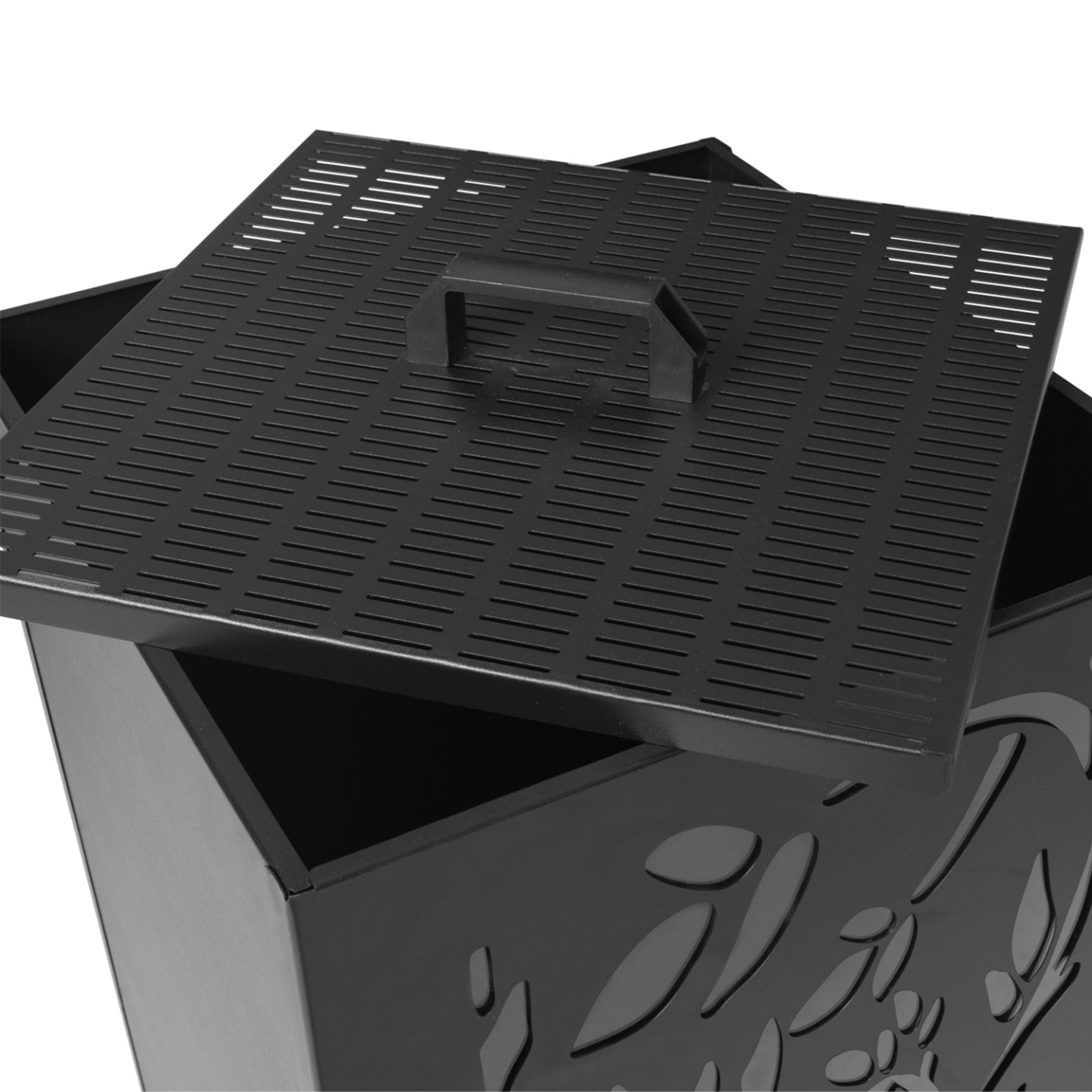 Optez sans plus tarder pour le réservoir à granulés de capacité de 55 KG esthétique et moderne. Sa forme élancée tout en hauteur de 36 x 36 x 87 cm, son motif découpé floral et sa couleur noire mate font de ce réservoir un produit à la fois indispensable à vos soirées d'hiver et un objet décoratif dans votre pièce de vie. Le réservoir s'adapte à vous : grâce à ses quatre roulettes, vous pouvez le déplacer très facilement. Son côté maniable le rend encore plus simple d'utilisation. Facile à remplir, le réservoir à pellets peut être déplacé de votre coin feu à votre garage sans salir votre séjour. Ne portez plus tous les sacs de granulés ! Une fois rempli, vous n'aurez plus à vous relever en soirée, vos granulés seront ainsi à portée de main. Une fois le réservoir de votre poêle chargé, mettez le restant des granulés directement dans votre réservoir à pellets. Pratique et malin, le réservoir à pellets vous propose une contenance de 55kg. Son motif floral est transparent, vous permettant de connaître la quantité de stock restant. Passez d'agréables moments au coin du feu ! Disposé au fond du réservoir, le tamis est un accessoire indispensable à la conservation de vos granulés. Idéal pour filtrer la poussière des granulés, le tamis réduit la quantité de poussière dans votre poêle et permet de conserver un chauffage de qualité. Dimensions du réservoir à granulés 55 kgDimensions globales : Longueur 36 cm x largeur 36 cm x Hauteur 87 cmDimensions du tamis : L. 33,5 x l. 33,5 x H. 5 cmDimensions du couvercle : L. 36 x l. 36 x H. 5 cmMatière : acier galvanisé noir matJauge florale transparente 4 roues À monter soi-même Retrouvez l'ensemble de nos accessoires de cheminée sur notre boutique en ligne !