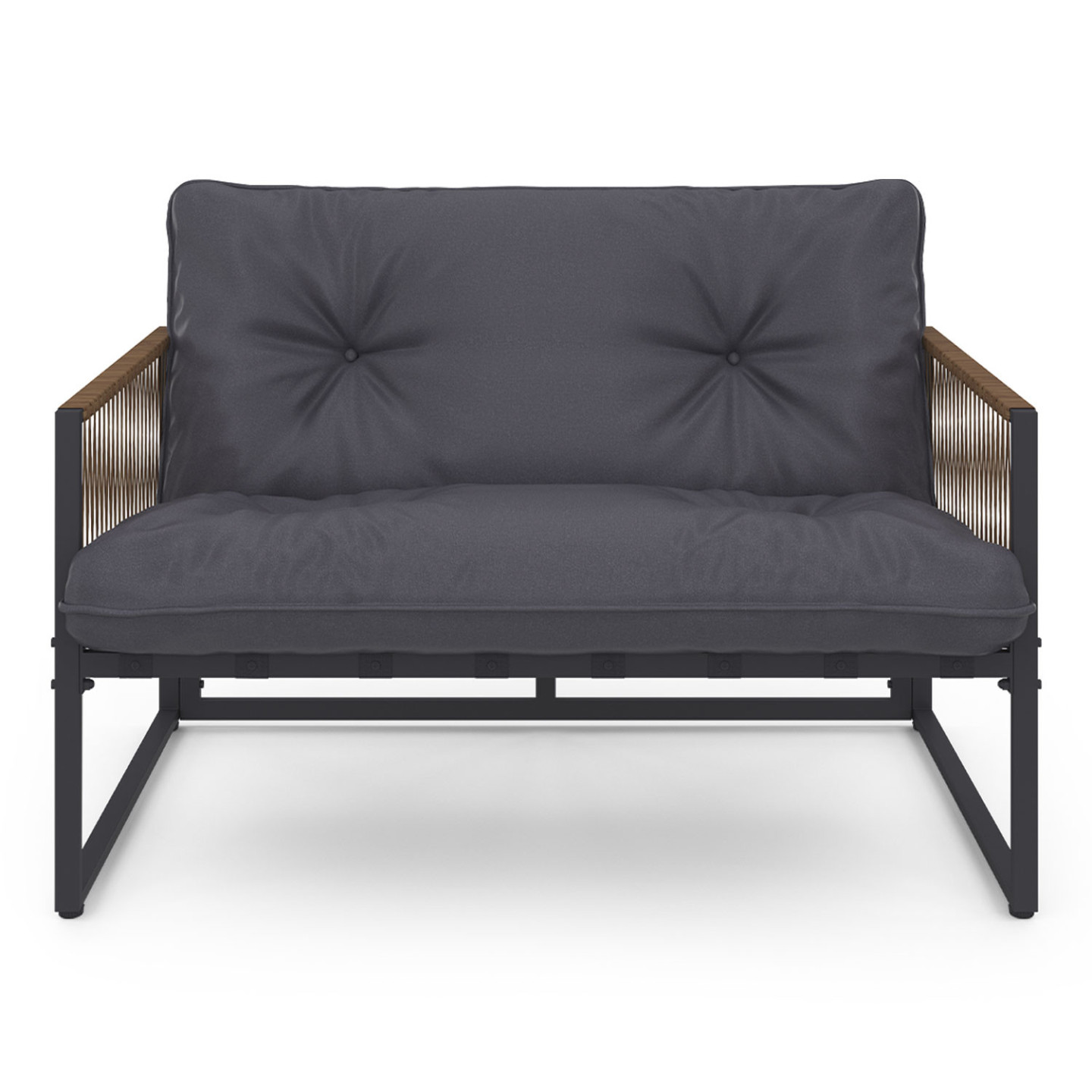 Craquez pour le salon de jardin RIO et profitez de moments chaleureux dans votre jardin ou sur votre terrasse ! Avec son look bicolore et bi-matière en acier gris et cordage marron ce salon 6 places apportera design et esthétisme à votre extérieur ! Composé de 2 fauteuils et de 2 sofas recouverts d'un épais coussin gris ultra confortable, ce salon est idéal pour profiter de votre extérieur confortablement installé. De plus ses petites tables basse vous permettent d'y poser vos encas et boissons fraîches pour les avoir à portée de main tout en profitant de longues journées ensoleillées et soirées d'été entre amis. Que vous preniez un bain de soleil ou que vous profitiez d'un apéro à plusieurs, soyez sûr d'apprécier chaque moment passé dans votre jardin.Fabriqué avec des matériaux de qualité, le salon RIO vous garantit stabilité, robustesse et résistance au soleil ainsi qu'aux intempéries ! Ce salon de jardin tendance et cocooning apportera la touche d'exotisme indispensable à votre extérieur. L'association des canapés et des fauteuils, tous munis d'accoudoirs en polyrotin marron, créée une ambiance chaleureuse. Pour parfaire votre ensemble, vous pouvez l'agrémenter d'un tapis d'extérieur ainsi que de lumières d'ambiance !Ce salon de jardin bas 6 places est parfait pour les retrouvailles en famille comme entre amis pour profiter du beau temps ! Ce salon bas deviendra rapidement l'élément indispensable de vos soirées d'été et de vos déjeuners au soleil.Dimensions du salon de jardin bas RIODimensions fauteuils : Longueur 60 cm x largeur 70 cm x Hauteur 67 cmDimensions canapé : L. 114 x l. 70 x H. 67 cmDimensions table basse 1 : L. 65 x L. 42 x H. 35 cmDimensions table basse 2 : L. 48 x l. 48 x H. 40 cmMatériaux : Structure en acier, accoudoirs en polyrotin, coussins en polyester 180 gr/m², plateau de table en DPCCouleur : Gris anthracite et rotinNombre de places : 6Composition : 2x fauteuils, 2x sofas, 2x tables bassesÀ monter soi-mêmeRetrouvez tous nos salons de jardin sur notre boutique en ligne !