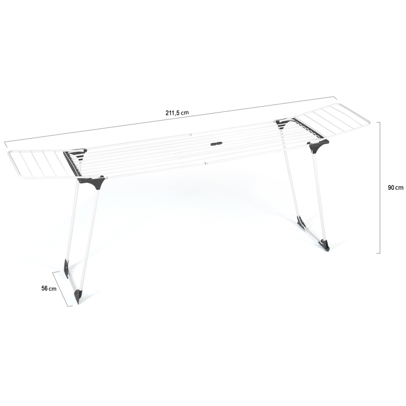 Adoptez ce séchoir à linge ULTRA pour sécher le linge de toute la famille ! Avec son design moderne et ses coloris gris et blanc, ce séchoir vous offrira une maxi surface d'étendage ! Extensible, ce modèle est pratique pour sécher l'intégralité de vos vêtements et de votre linge de maison. Idéal pour faciliter votre quotidien !Pour une capacité d'étendage maximale (plus de 22 m), sa partie centrale est extensible. Vous obtiendrez ainsi un séchoir d'une longueur de 211,5 cm, idéal pour suspendre votre linge de lit et vos serviettes.Ses 2 ailes rabattables, qui peuvent être ouvertes ou fermées, vous permettront de moduler cet étendoir selon vos besoins et votre espace. Chaque aile est constituée de barres de suspension horizontales pour disposer à plat votre linge le plus délicat ou suspendre vos affaires verticalement aux barres à l'aide de pinces à linge.Gain de place, cet étendoir peut être replié et rangé après chaque utilisation, afin de ne pas encombrer votre intérieur.Ses 4 roulettes intégrées vous permettront de le déplacer facilement et sans effort !Adoptez cet étendoir extensible ULTRA pour sécher tout votre linge à prix malin !Dimensions du séchoir ULTRA gris et blanc- Dimensions déplié : Longueur 160 CM à 211,5 CM x largeur 56 CM x Hauteur 90 CM- Dimensions replié : L.100 x l.56 x H.12 CM- Matériaux : acier + plastique ABS- Coloris : gris et blanc- 4 roues - À monter soi-mêmeRetrouvez tous nos modèles de séchoirs à linge et étendoirs sur notre boutique en ligne !