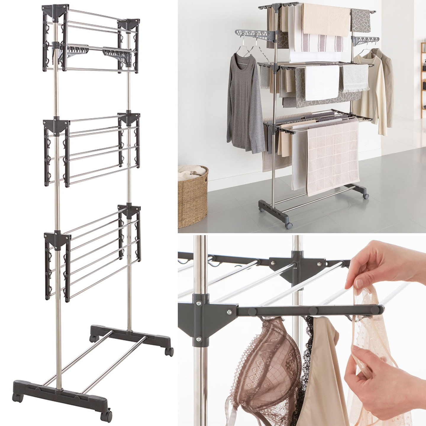 | Libellé | IDMARKET Séchoir à linge vertical pliable 3 niveaux MAXIMA capacité inox et gris |