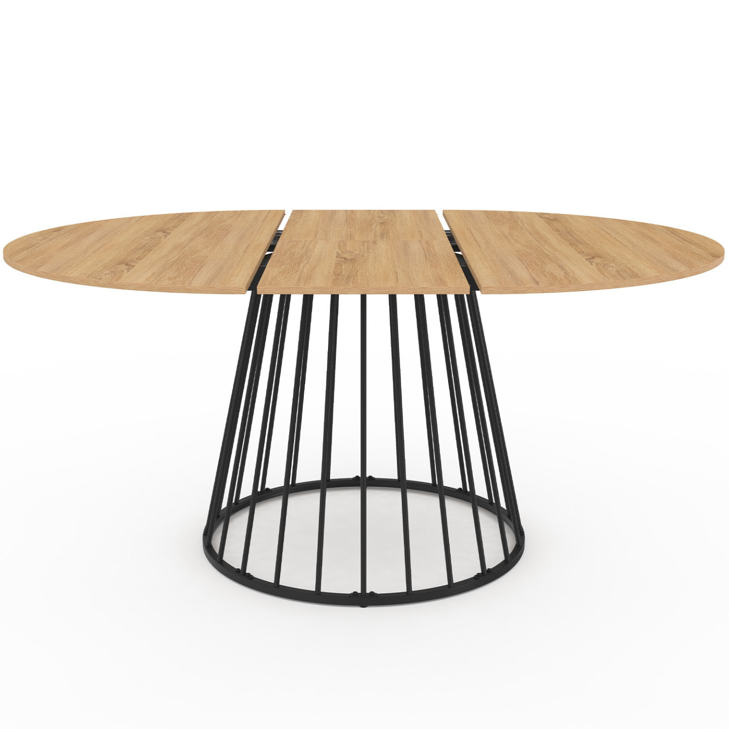 Libellé IDMARKET Table à manger extensible ronde YUNA 6-8 personnes plateau bois et pied filaire en métal noir 110 - 150 cm