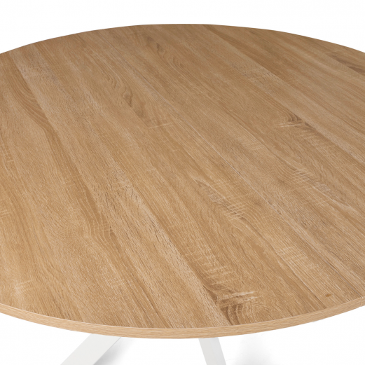 Le design industriel s'invite dans votre salle à manger avec cette table à manger ALIX ronde bicolore coloris bois et blanc 110 cm !La table à manger 6 personnes et son plateau de 110 cm de diamètre apporte un côté sophistiqué à votre intérieur !Profitez de votre repas en toute tranquillité, autour d'un apéro en famille, entre amis ou bien installez-vous avec votre ordinateur pour consulter vos mails !Sa forme ronde conviviale en fait une table à manger idéale pour partager des moments privilégiés avec vos proches tout en facilitant la circulation au sein de la pièce.Dotée d'une structure bi-matière avec son plateau bois et son pied araignée central en métal blanc, c'est l'association idéale pour un look façon loft et un esprit chaleureux qui se mariera parfaitement avec votre décoration intérieure en y apportant une touche d'originalité.De plus, sa structure en PB d'une épaisseur de 1,5 cm et son pied en métal blanc lui assurent stabilité et robustesse !Optez pour le style industriel moderne et craquez pour l'élégante table à manger ALIX ronde 110 cm !Dimensions de la table à manger ALIX ronde bois et métal 110 cmDimensions globales : Diamètre 110 cm x Hauteur 76 cmLargeur du piétement : 95 cmPlateau coupé en 2Matériaux : panneaux de particules (PB) mélaminés 1,5 cm, pieds métal 5 cm x 2,5 cmColoris : bois et blancCapacité : 6 personnesÀ monter soi-mêmeCe modèle est également disponible en coloris noir et bois.Retrouvez l'ensemble de notre collection industrielle sur notre boutique en ligne !