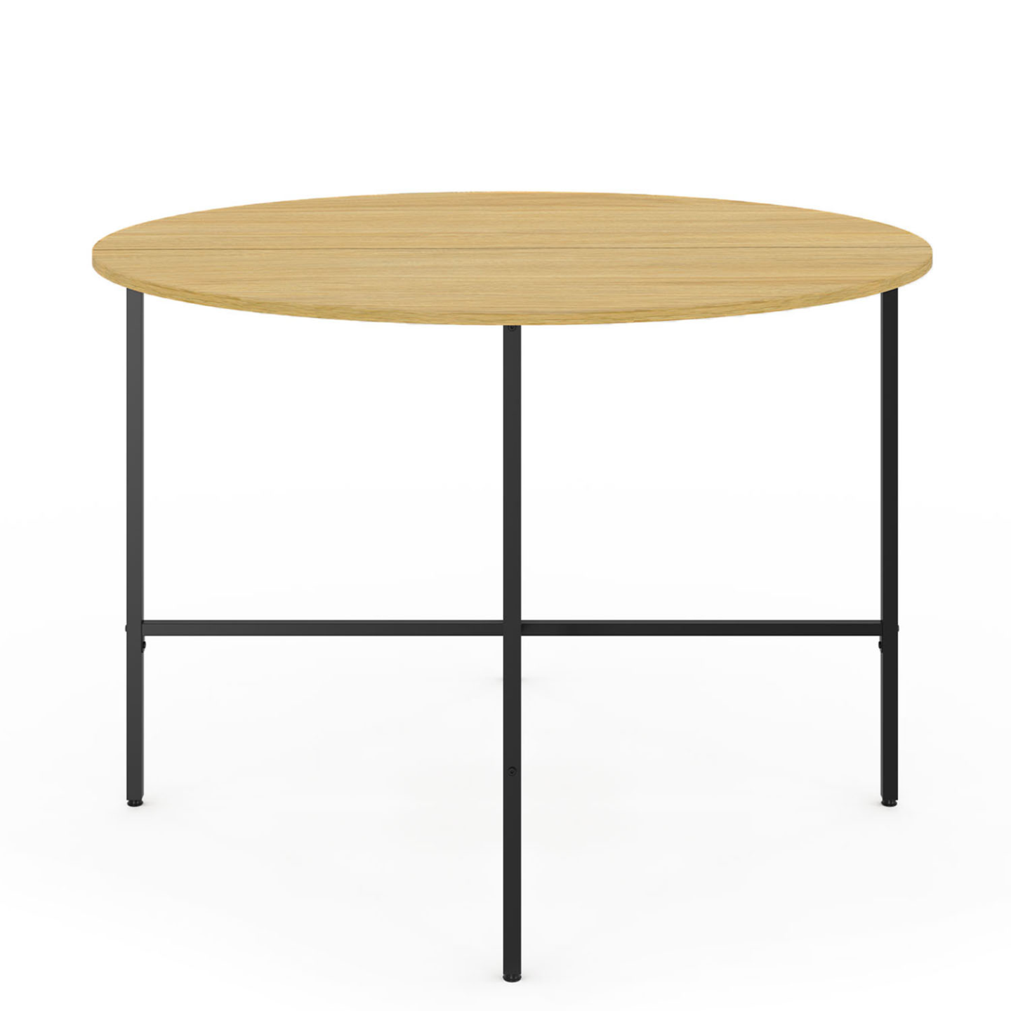 Le design industriel s'invite dans votre salle à manger avec cette table DETROIT ronde 110 cm bi-matière ! La table ronde DETROIT trouvera rapidement sa place dans votre intérieur. Elle pourra en effet s'intégrer à différents styles de décoration avec son côté loft new-yorkais ou en apportant un peu de chaleur et de convivialité grâce à son design arrondi. Pratique et fonctionnelle, cette table à manger est dotée d'un plateau de 110 cm de diamètre et s'adapte à tous vos besoins. Profitez de vos repas en toute tranquillité, recevez vos amis autour d'un apéro ou bien installez-vous avec votre ordinateur pour consulter vos mails !Ses dimensions compactes en font une table à manger idéale pour les petits espaces et sa forme ronde conviviale facilite la circulation au sein de la pièce.De plus, sa structure en MDF et ses pieds en métal noir lui assurent une très bonne stabilité et robustesse.Optez pour le look factory moderne et craquez pour la table DETROIT ronde 80 cm !Dimensions de la table à manger ronde DETROITDimensions globales : Diamètre 110 cm x Hauteur 75 cm Matériaux : MDF et pieds en métalColoris : bois et noirÀ monter soi-mêmeRetrouvez l'ensemble de notre collection industrielle sur notre boutique en ligne.