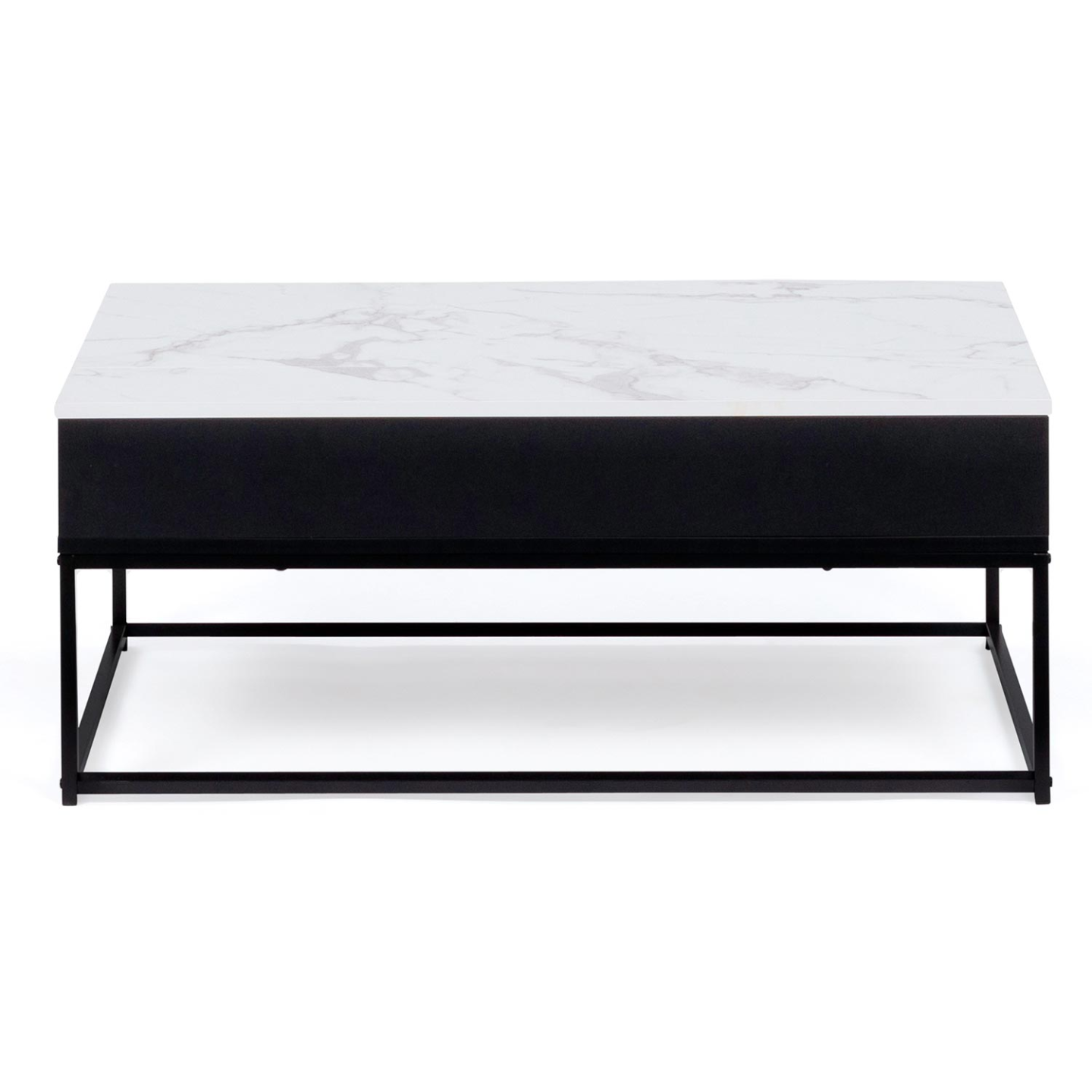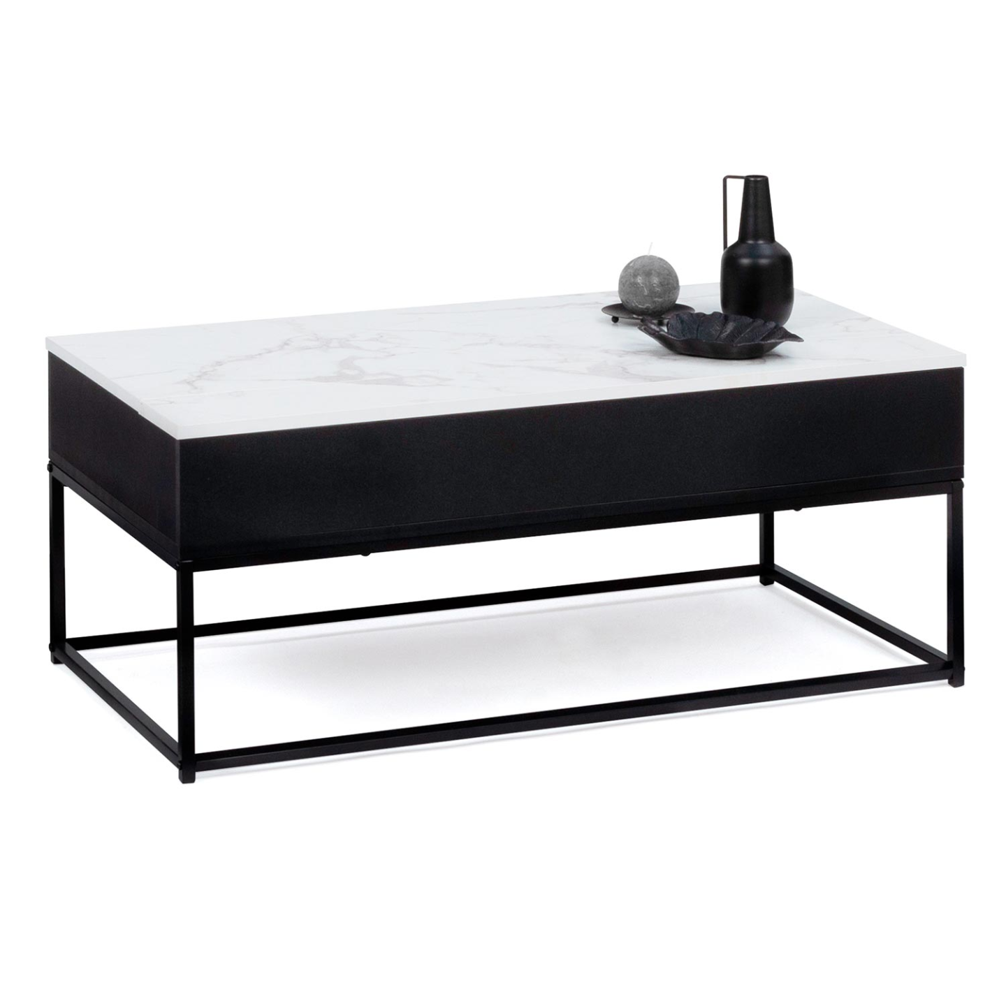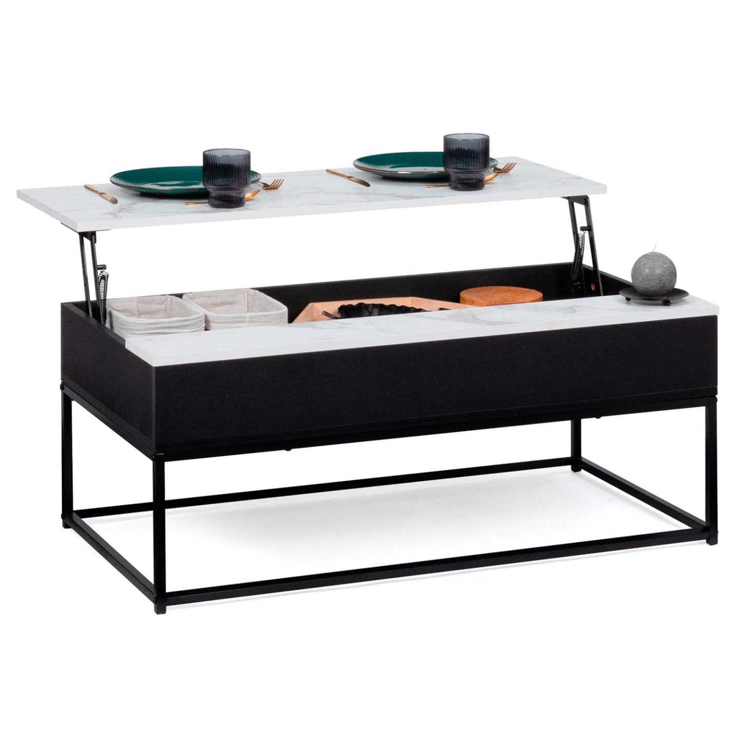 IDMARKET Table basse plateau relevable rectangulaire ALASKA effet marbre et bois noir pied métal