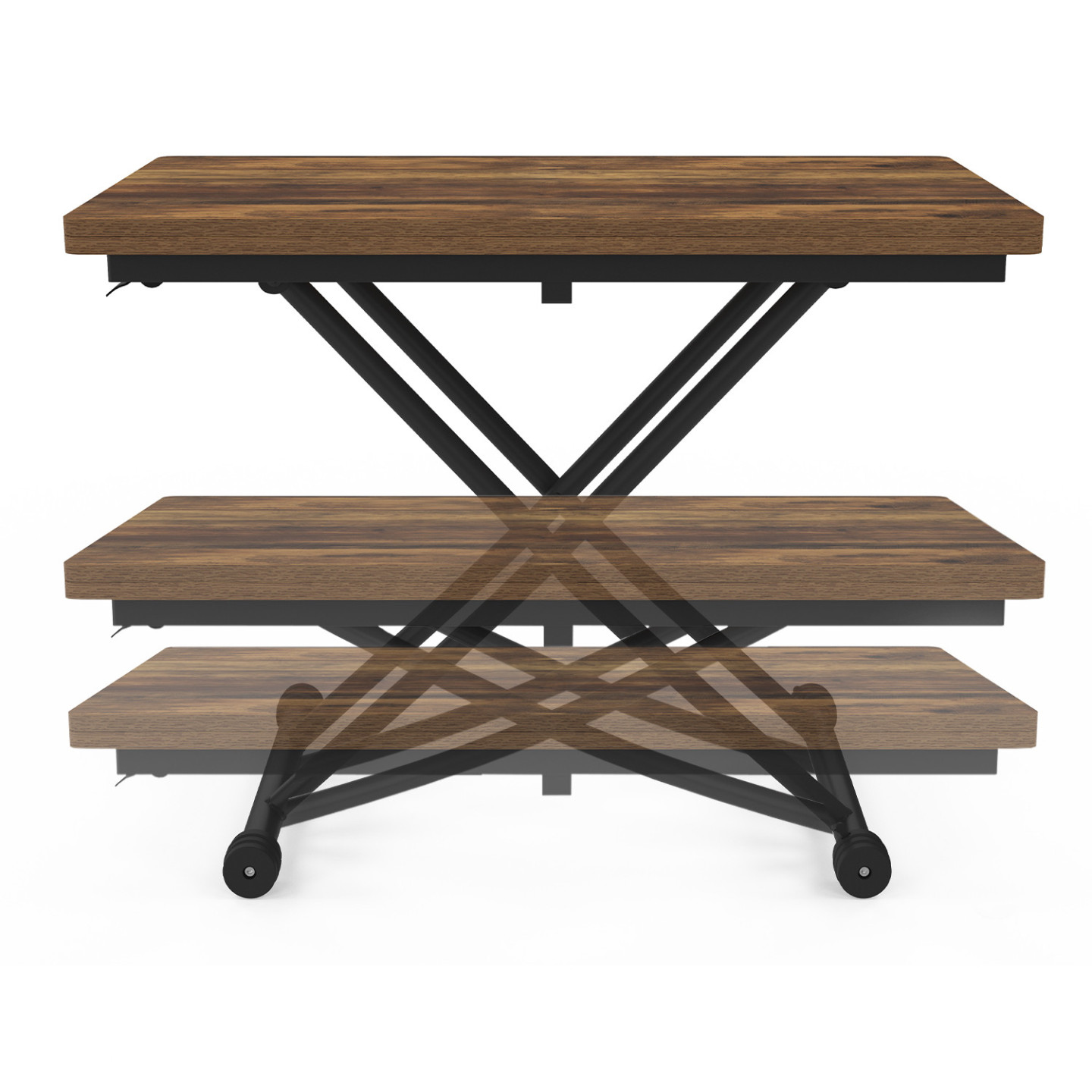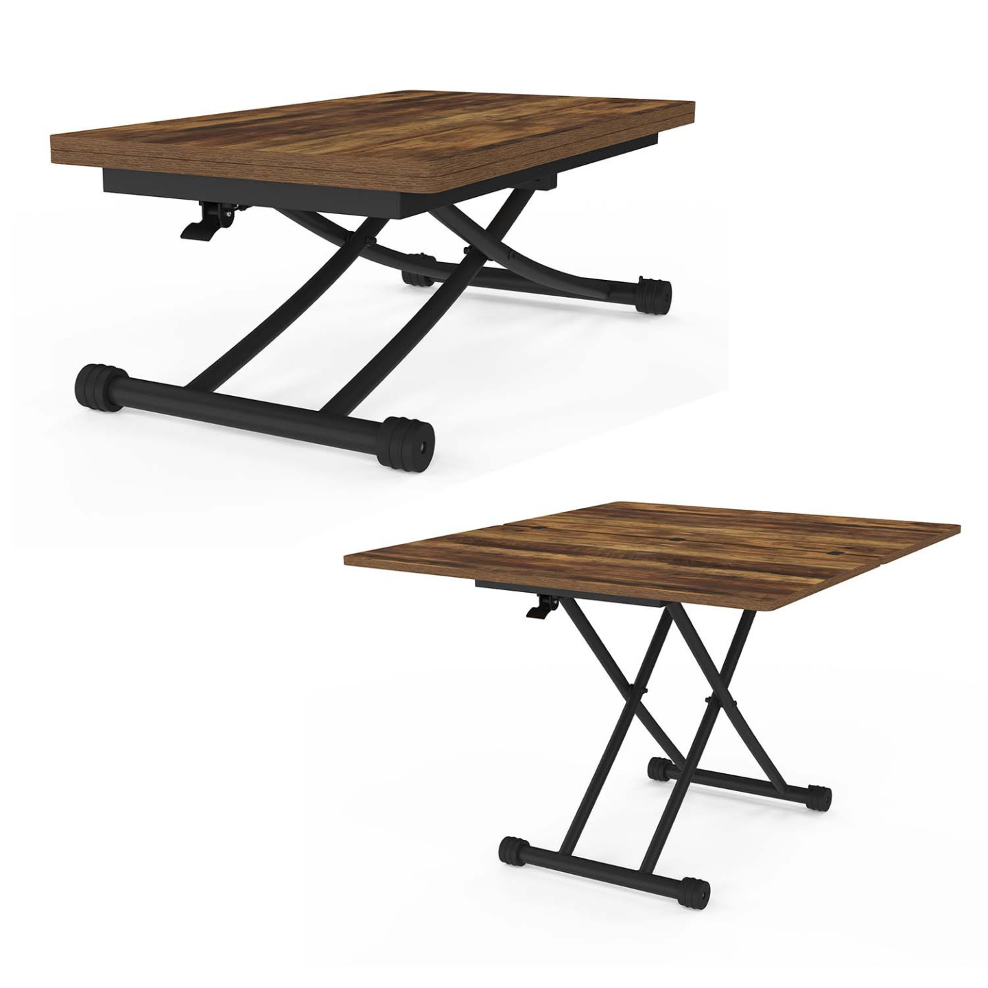 | Libellé | IDMARKET Table basse relevable en table à manger URBANA bois foncé effet vieilli et noir design industriel |