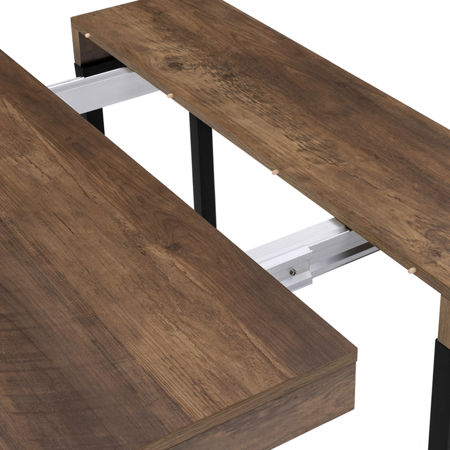 Vous êtes à la recherche d'un meuble ultra fonctionnel, multi-usage pour compléter votre mobilier et apporter une touche design à votre intérieur ? Découvrez la table console extensible TORONTO bois aspect vieilli et noir au style industriel tendance qui saura répondre à toutes vos attentes !Dans sa version allongée, accueillez jusqu'à 10 personnes autour de cette table à manger conviviale 235 x 90 cm !Une fois repliée, servez-vous de cette console 90 x 45 cm comme meuble d'entrée pour disposer vide-poches, objets déco ou petites plantes. Son style factory sublimera votre entrée avec caractère. Pratique et gain de place par excellence, passez d'une fonctionnalité à l'autre facilement grâce à ses 4 rallonges de 47 cm chacune.Sa structure bi-matière en panneaux de particules de bois et métal noir apporte à ce meuble polyvalent stabilité et robustesse.Profitez de dîners en famille ou entre amis sans encombrer votre intérieur grâce à cette table console extensible TORONTO design industriel !Dimensions de la table console extensible 235 - 90 cmDimensions table étendue : Longueur 235 cm x largeur 90 cm x Hauteur 75 cmDimensions console repliée : L. 45 x l. 90 x H. 75 cm4 rallonges de 47 cm de longueurMatériaux : Panneaux de particules et métalAccueille jusqu'à 10 personnesColoris : Bois aspect vieilli et noirÀ monter soi-mêmeCe modèle est également disponible en version 300 cm.Retrouvez l'ensemble de nos tables consoles sur notre boutique en ligne !