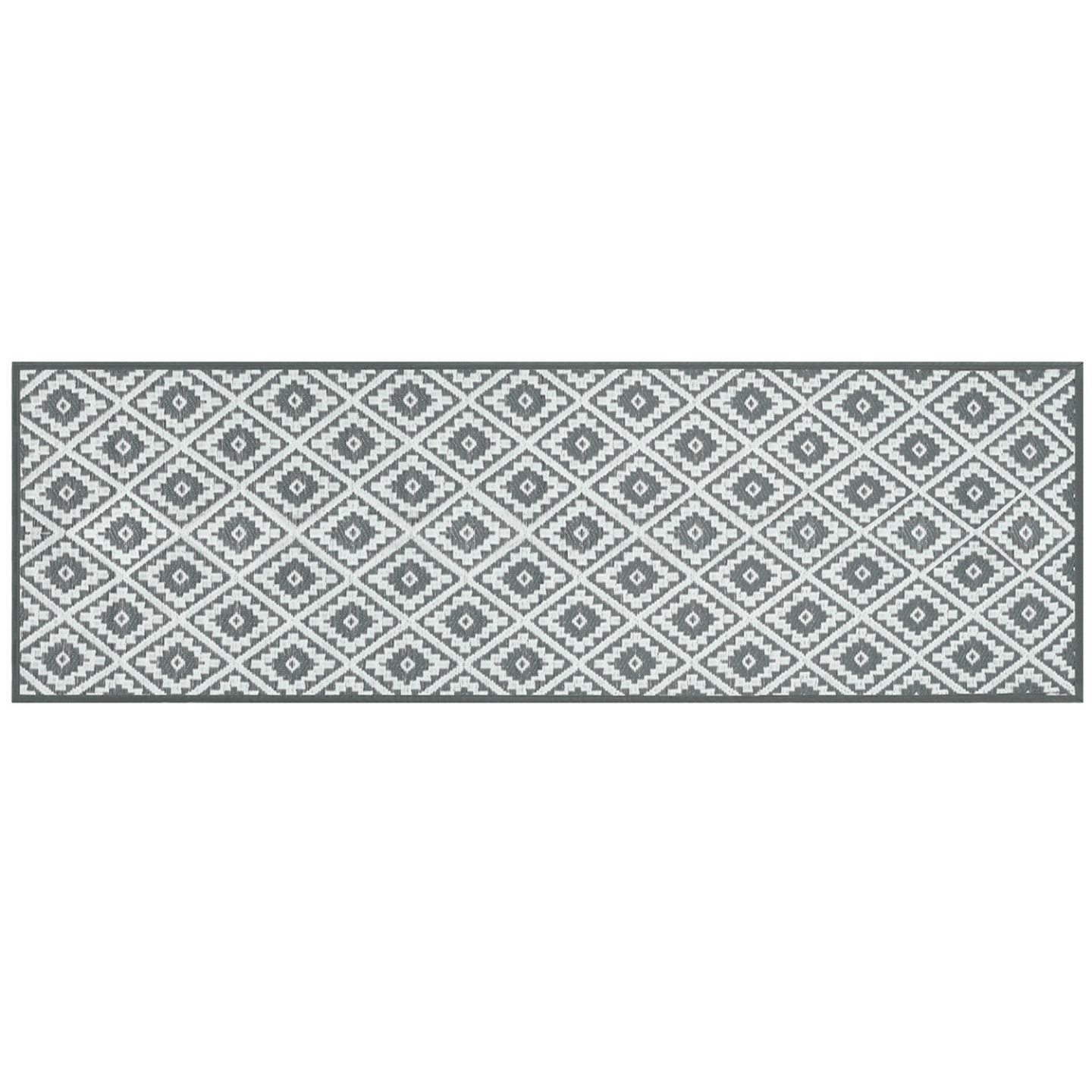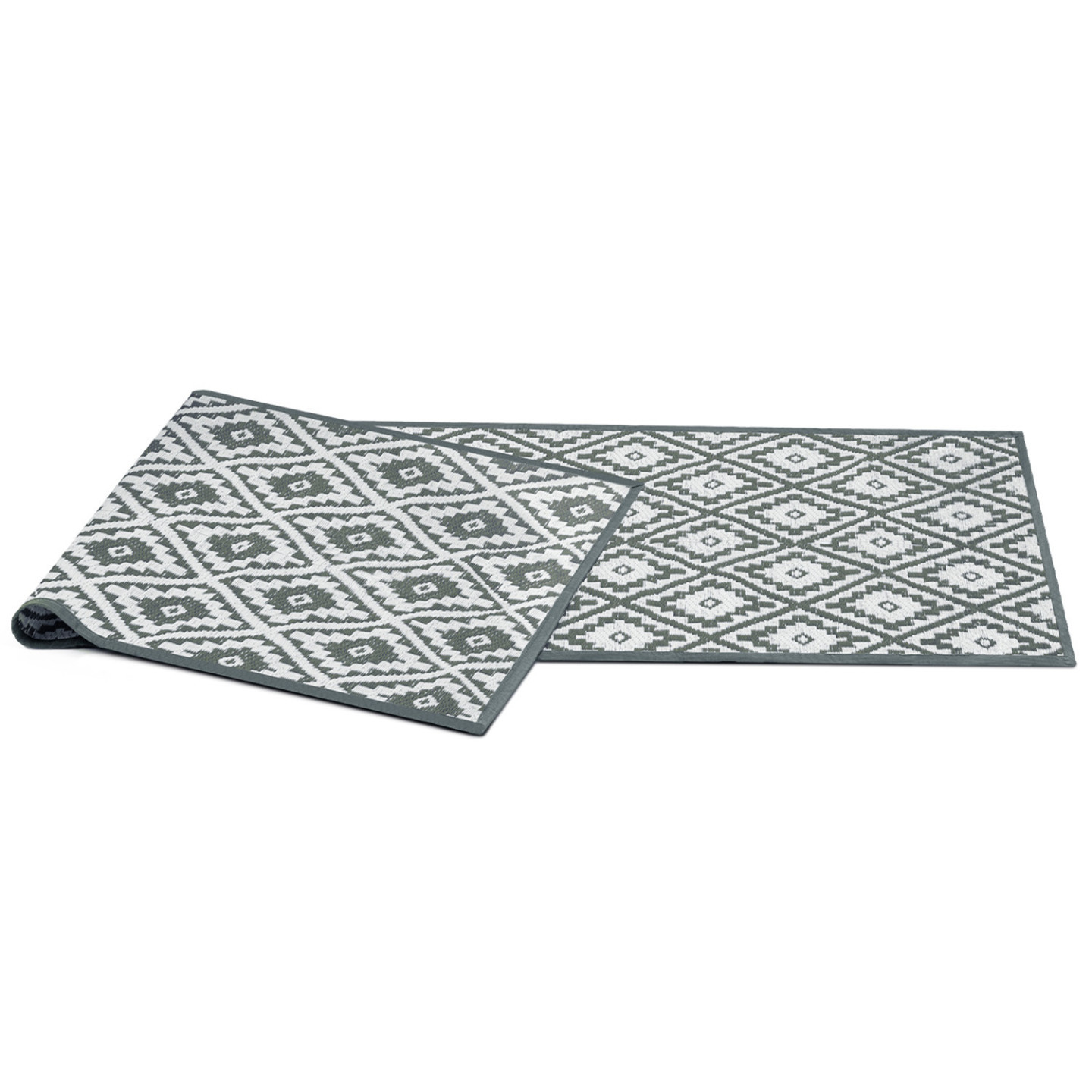 Donnez du charme à votre balcon grâce au tapis extérieur BAHAMAS gris de 80 x 250 CM ! Ses jolis motifs géométriques gris anthracite et blancs apporteront une touche de modernité à votre extérieur sans pour autant dénaturer votre déco ! Résistant grâce à son traitement anti-UV, le tapis est fabriqué en 100% polypropylène avec une densité de 350 gr/m². Pour le nettoyer ? Rien de plus simple, il vous suffit de le laver à l'eau en cas de tache ou d'éclaboussure.Ses dimensions de 250 CM de longueur et de 80 CM de largeur en font un élément de décoration indispensable pour redécorer votre balcon en un clin d'œil ! Il peut très bien être utilisé également comme tapis de couloir, ou devant votre cuisine. Sa forme s'adaptera facilement à n'importe quelle pièce !Moderne et design, votre tapis accompagnera vos soirées d'été comme vos moments de relaxation au soleil. Positionnez-le où bon vous semble : sur votre balcon comme dans votre entrée, c'est un sans faute assuré ! Pour une durée de vie prolongée de votre tapis, pensez à l'entreposer dans une endroit sec pendant la saison froide et en cas de forte pluie.Laissez-vous tenter par ce joli tapis de jardin BAHAMAS gris et blanc et redonnez un coup de neuf à votre extérieur ! Dimensions du tapis BAHAMAS gris 80 x 250 CMDimensions du tapis : Longueur 250 cm x largeur 80 cmMatériaux : 100% polypropylène (PP)Densité : 350 gr/m²Motifs : géométriques gris anthracite et blanc Traitement anti-UVCe modèle de tapis extérieur BAHAMAS gris 80 x 250 cm existe dans d'autres dimensions : - Tapis extérieur BAHMAS gris 120 x 180 cm- Tapis extérieur BAHMAS gris 160 x 260 cm- Tapis extérieur BAHMAS gris 180 x 280 cm- Tapis extérieur BAHMAS gris 270 x 370 cm- Tapis extérieur BAHMAS gris 270 x 470 cmDécouvrez toutes les dimensions disponibles et tous nos tapis d'extérieur sur notre boutique en ligne !