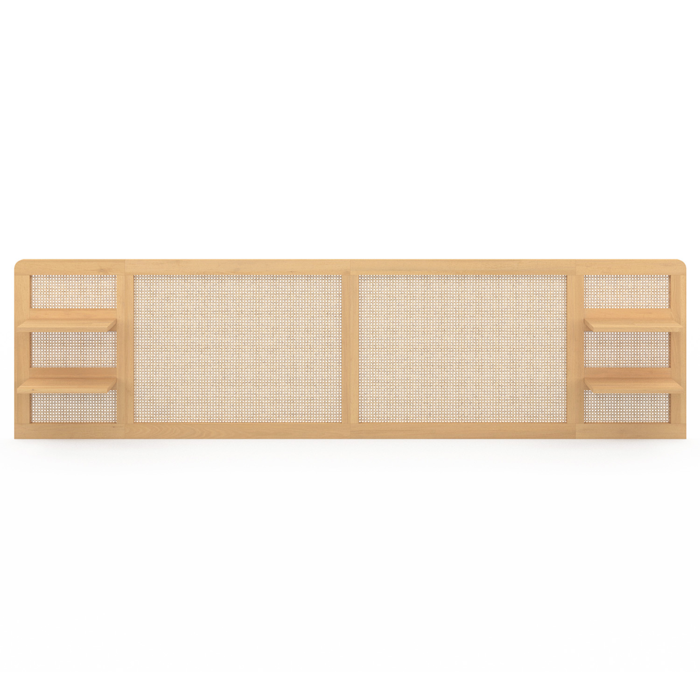 Laissez-vous séduire par le look moderne et vintage de la tête de lit EDHEN au design tendance avec le cannage mélangé au bois. Cette tête de lit de 240 cm de long habillera votre mur et apportera une touche cossue et design à votre lit.Adaptable à tous les lits 140 cm et 160 cm, la tête de lit EDHEN est facile à installer. Grâce à son design épuré et ses accroches murales, elle permet également un gain de place dans votre chambre à coucher.La tête de lit EDHEN est composée de 4 tablettes de chevet coloris bois clair qui sont idéales pour y déposer vos affaires personnelles, nécessaire de nuit, réveil ou encore lampes de chevet.Sa hauteur de 64 cm vous permet de vous adosser confortablement avec vos oreillers pour lire ou regarder votre série préférée. La tête de lit murale EDHEN, alliant cannage et MDF, deviendra une pièce forte de votre chambre à coucher, pour un espace nuit personnalisé et une atmosphère décontractée et bohème. À saisir d'urgence !Dimensions de la tête de lit EDHEN cannage et étagèresDimensions globales : Longueur 240 cm x largeur 23 cm x Hauteur 64 cmDimensions d'une étagère : L. 31 x l. 20 x H. 3,5 cmMatériaux : MDF et cannage plastiqueColoris : Bois naturelRebord de la tête de lit : 5,5 cmKit de fixation inclusÀ monter soi-mêmePour une chambre harmonieuse et chaleureuse, optez pour la commode ainsi que les tables de chevet pour un total look cannage ultra tendance !Retrouvez également nos têtes de lit avec rangements disponibles sur notre boutique en ligne.
