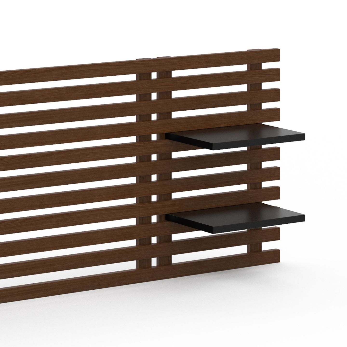 | Libellé | IDMARKET Tête de lit suspendue en lattes AVA 240 cm bois vieilli et étagères noires |