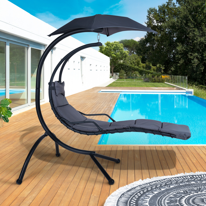IDMARKET Transat bain de soleil suspendu gris anthracite avec pare soleil