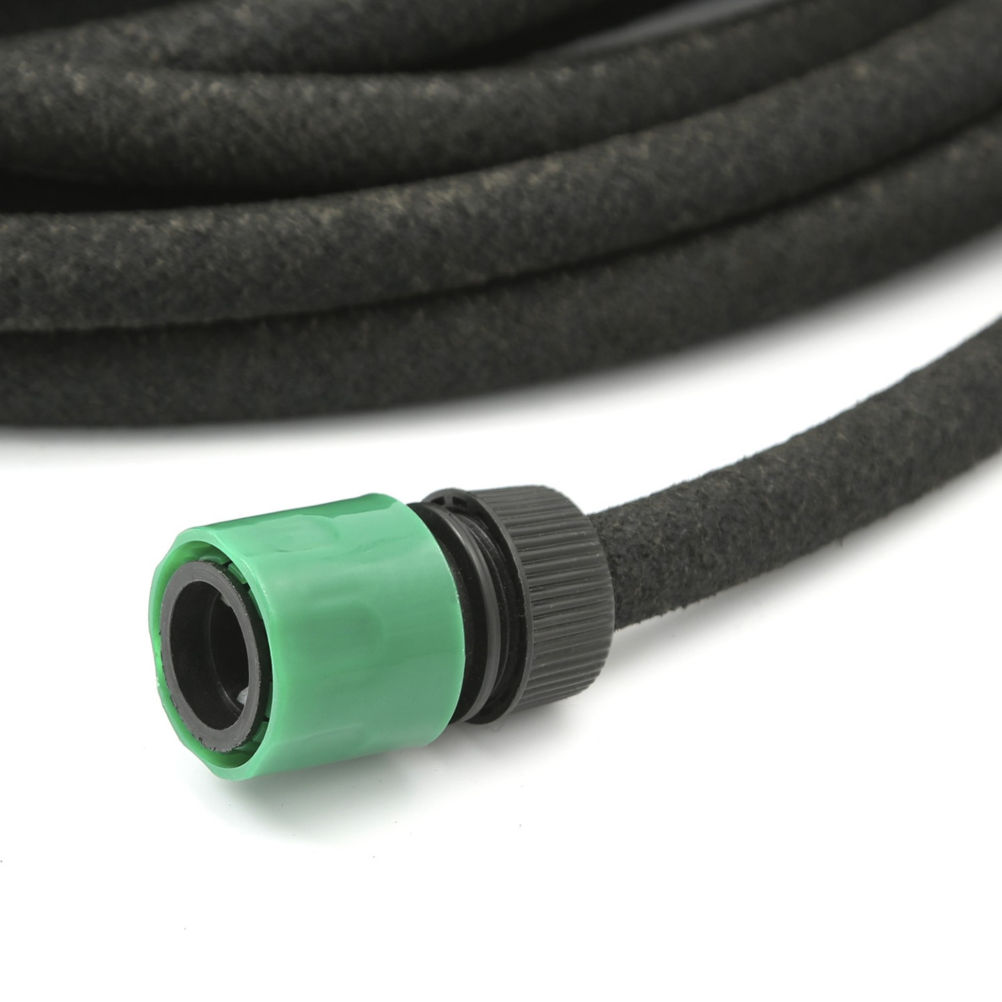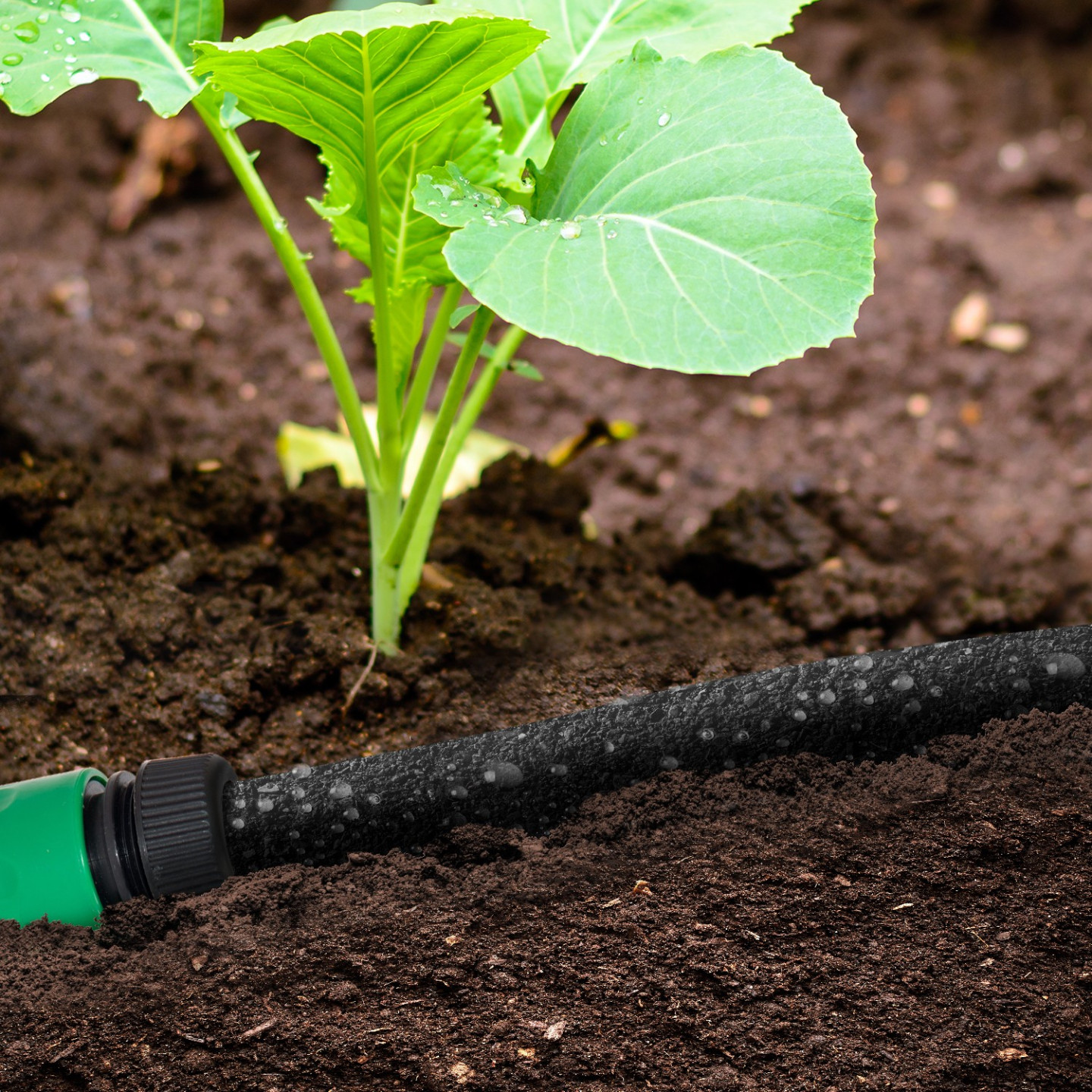 Arrosez facilement vos parterres de fleurs, vos cultures ou vos haies grâce au tuyau micro poreux de 25 M de long en caoutchouc ! Avec ses micros pores, vous n'aurez plus besoin de vous déplacer pour arroser un à un vos plants, vous pourrez désormais irriguer toute une zone définie selon vos envies. Conçu pour minimiser la perte d'eau qui peut être causée par le vent notamment, ce tuyau spécial irrigation se place entre vos rangées de fleurs, vos haies ou entre vos cultures. Selon vos besoins ou pour des raisons esthétiques, vous pourrez le recouvrir de paillis d'écorce par exemple, de façon à ce que le système d'irrigation ne soit pas visible. De cette manière, l'évaporation ou la formation d'algues seront réduites significativement. Véritable goutte à goutte, le système à débit réduit permet à la fois de faire des économies d'eau mais également de réduire au maximum le temps passé à arroser vos parterres : il s'occupe de tout, tout seul et en toutes circonstances ! Vendu avec 2 connecteurs de robinet en plastique verts et noirs compatibles toutes marques, vous pourrez raccorder votre tuyau facilement et irriguer la zone que vous souhaitez ! Sa longueur de 25 M peut tout à fait être raccourcie selon votre utilisation. Veillez à ne pas dépasser une pression de service maximale de 3 bars. Ne perdez plus de temps à arroser vos plantations une à une en optant pour le tuyau micro poreux de 25 M qui irriguera la zone que vous voulez ! Dimensions du tuyau goutte à goutte 25 M- Longueur du tuyau : 25 M- Diamètre intérieur du tuyau : 1,2 CM- Diamètre extérieur du tuyau : 1,6 CM- Matière du tuyau : caoutchouc- Vendu avec 2 connecteurs plastiques pour robinet verts et noirs