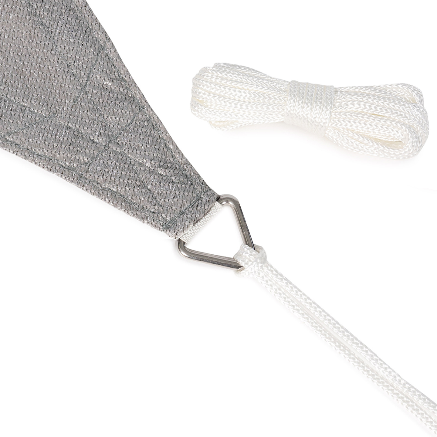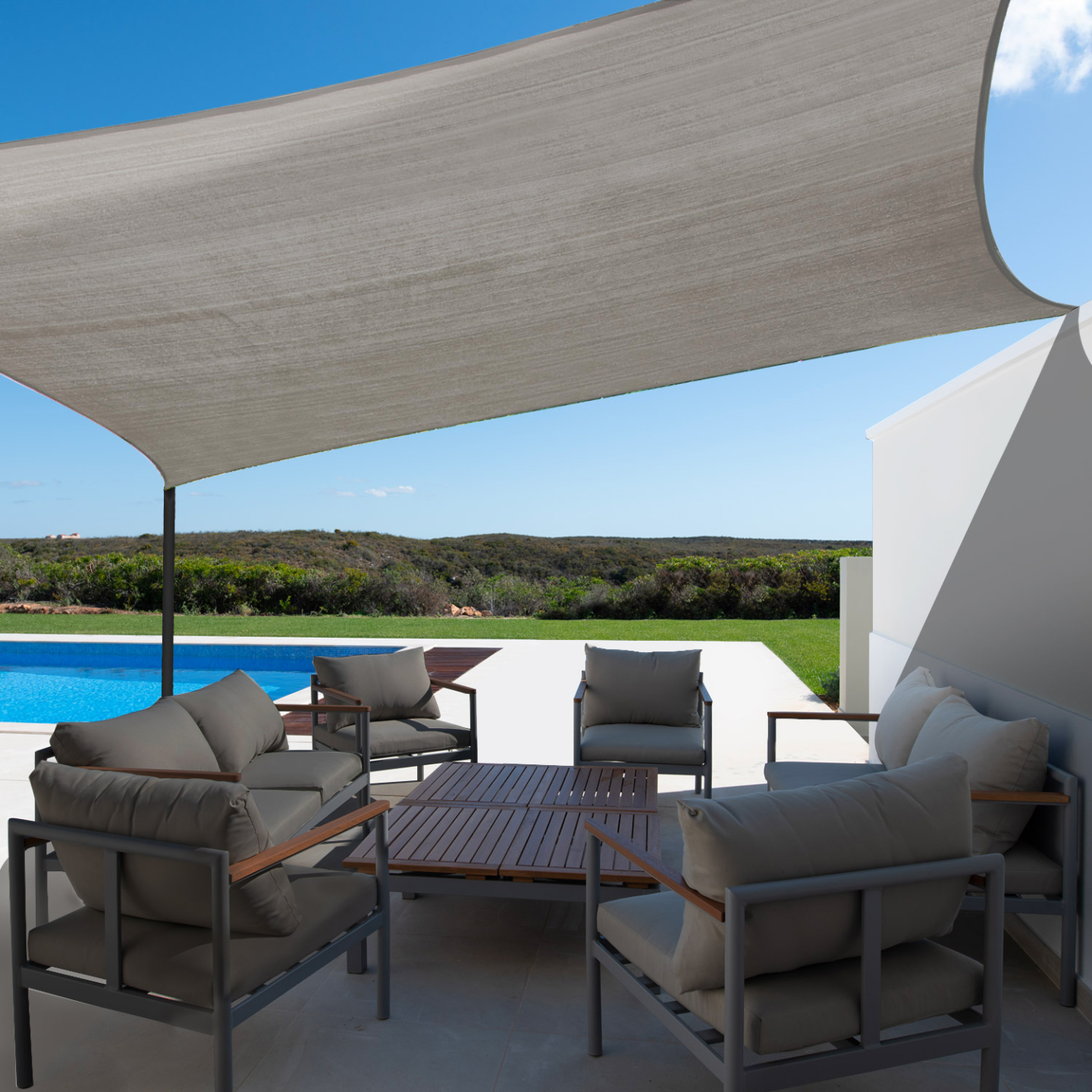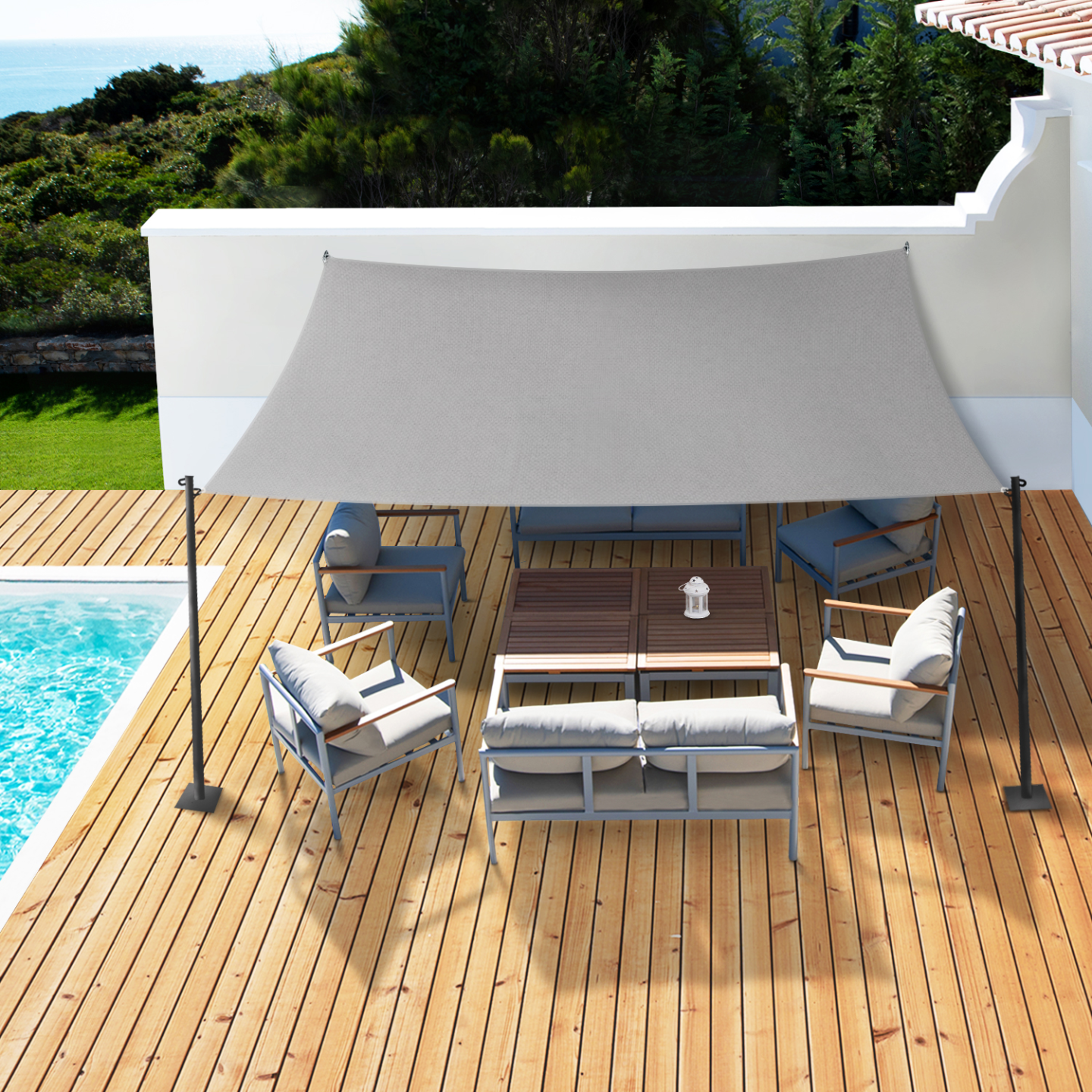 Offrez-vous un espace ombragé à petit prix grâce au voile d'ombrage rectangulaire et ses belles dimensions de 4x6 M. Sa grande taille et son traitement anti-UV vous protégeront des rayons du soleil, idéal pour flâner toute la journée dans son salon de jardin ou son hamac ! Avec son coloris tendance et lumineux, vous pourrez attacher la toile où bon vous semble : le gris clair se marie à la perfection avec tous les extérieurs et propose une occultation à la fois dynamique et chaleureuse. Grâce à son système d'attache facile, fixer son voile d'ombrage devient un jeu d'enfant ! Chaque angle est équipé d'un anneau triangle en acier inoxydable (4x4x4CM) et 4 cordes de 1.5 M de long sont également fournies. Légère et résistante à la déchirure, la matière en polyéthylène haute densité vous garantit une efficacité sans faille. L'air peut circuler librement sans vous apporter un sentiment d'étouffement grâce à sa composition dite "respirante". Une fois la nuit tombée, la toile rectangulaire vous préservera de l'humidité, parfait pour profiter de vos soirées d'été entre amis ou en famille. Vous pouvez également superposer plusieurs voiles d'ombrage pour créer une ambiance encore plus conviviale et cocooning !Profitez du voile d'ombrage 4x6 M gris clair pour égayer votre décoration extérieure tout en vous protégeant facilement des rayons du soleil ! Dimensions de la toile rectangulaire 4x6 M pour terrasse- Dimensions totales : Longueur 600 CM x largeur 400 CM- Longueur de chaque corde : 150 CM x épaisseur 5 MM- Densité de la toile : 180 gr/m²- Matière en polyéthylène haute densité (HDPE)- Traitement anti-UV- Indice UV 3- Forme de la toile : rectangulaire- Se fixe aux arbres, murs, poteaux, etc.Besoin d'un kit de fixation ou d'un mât pour votre voile ? Rendez-vous sur notre boutique en ligne pour découvrir nos solutions de fixation !Ce modèle de voile d'ombrage existe dans d'autres coloris :- Voile d'ombrage rectangulaire 4x6 M gris- Voile d'ombrage rectangulaire 4x6 M sable- Voile d'ombrage rectangulaire 4x6 M terracotta- Voile d'ombrage rectangulaire 4x6 M blancDécouvrez également tous nos autres voiles d'ombrage et ombrières disponibles sur notre boutique en ligne.