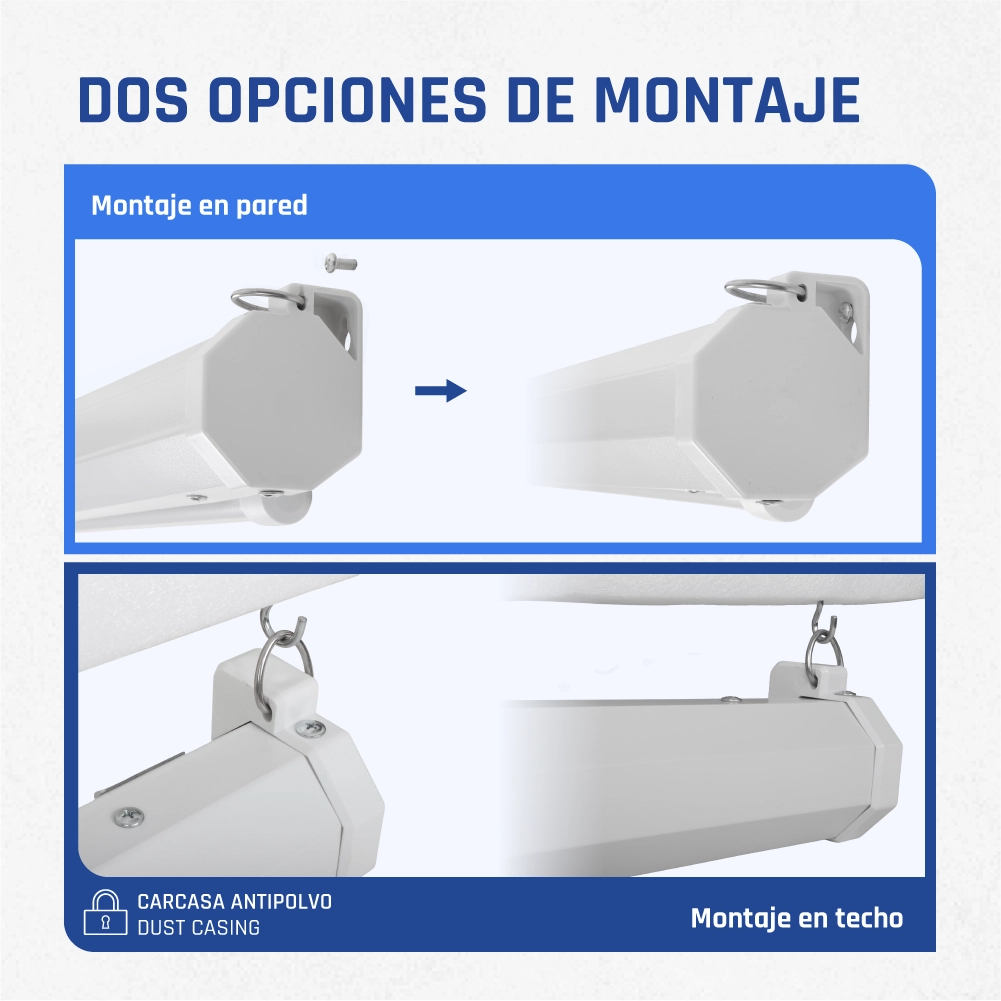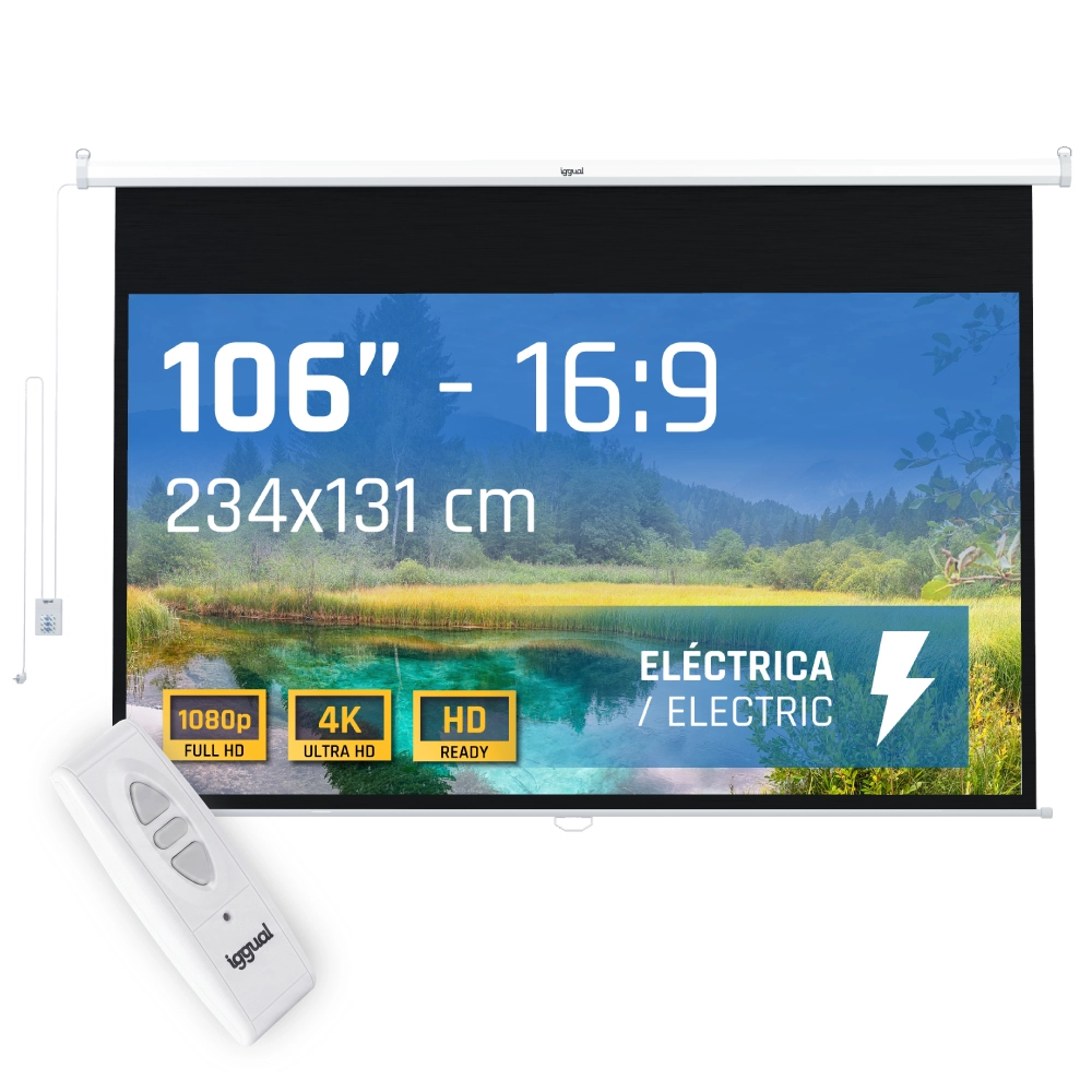 iggual PSIPS234. Cycle operating par jour (max): Motorisée, Diagonale: 2,69 m (106"), Largeur de visualisation (l): 2,34 m, Hauteur de visualisation (h): 131 cm, Format d'image: 16:9. Couleur du produit: Noir, Blanc