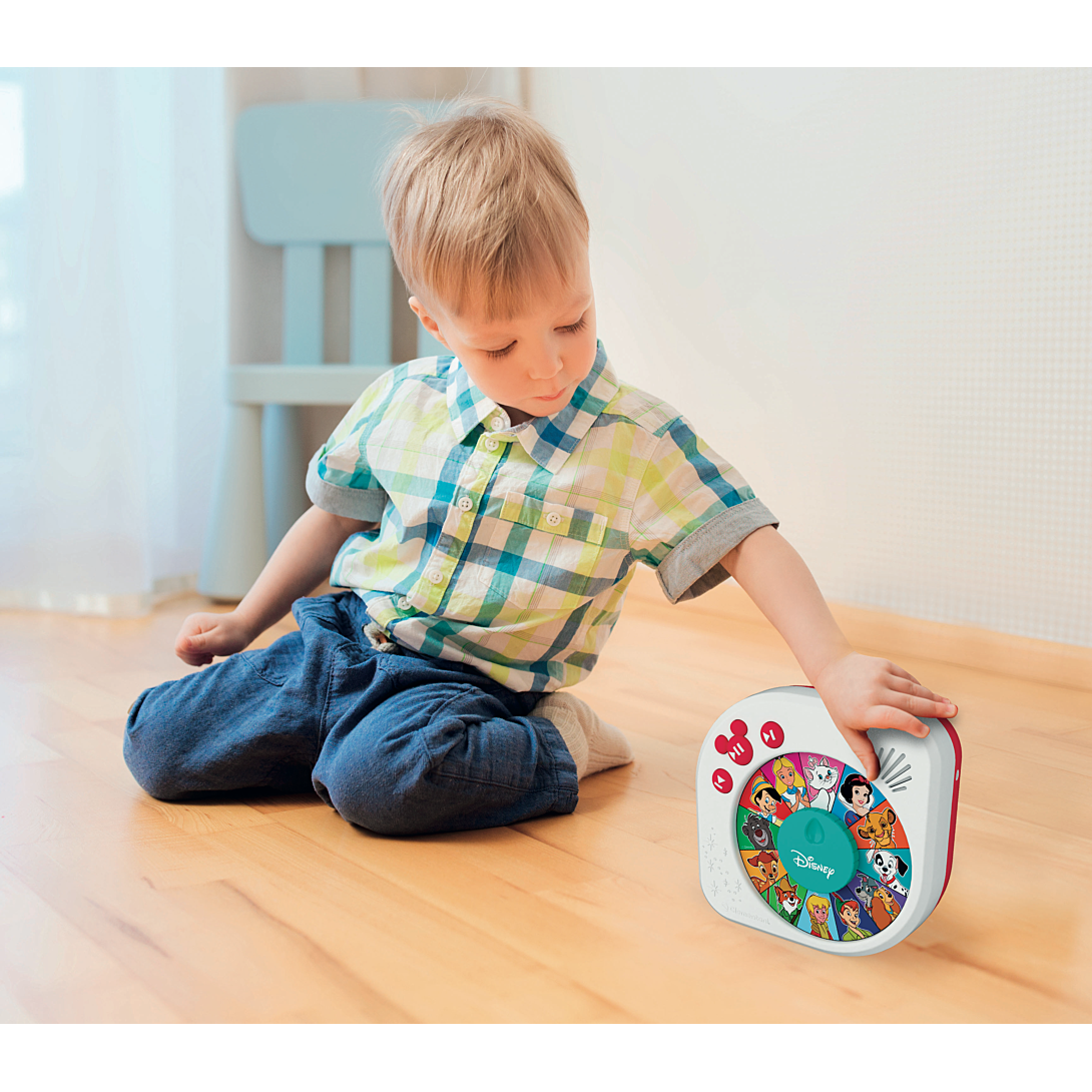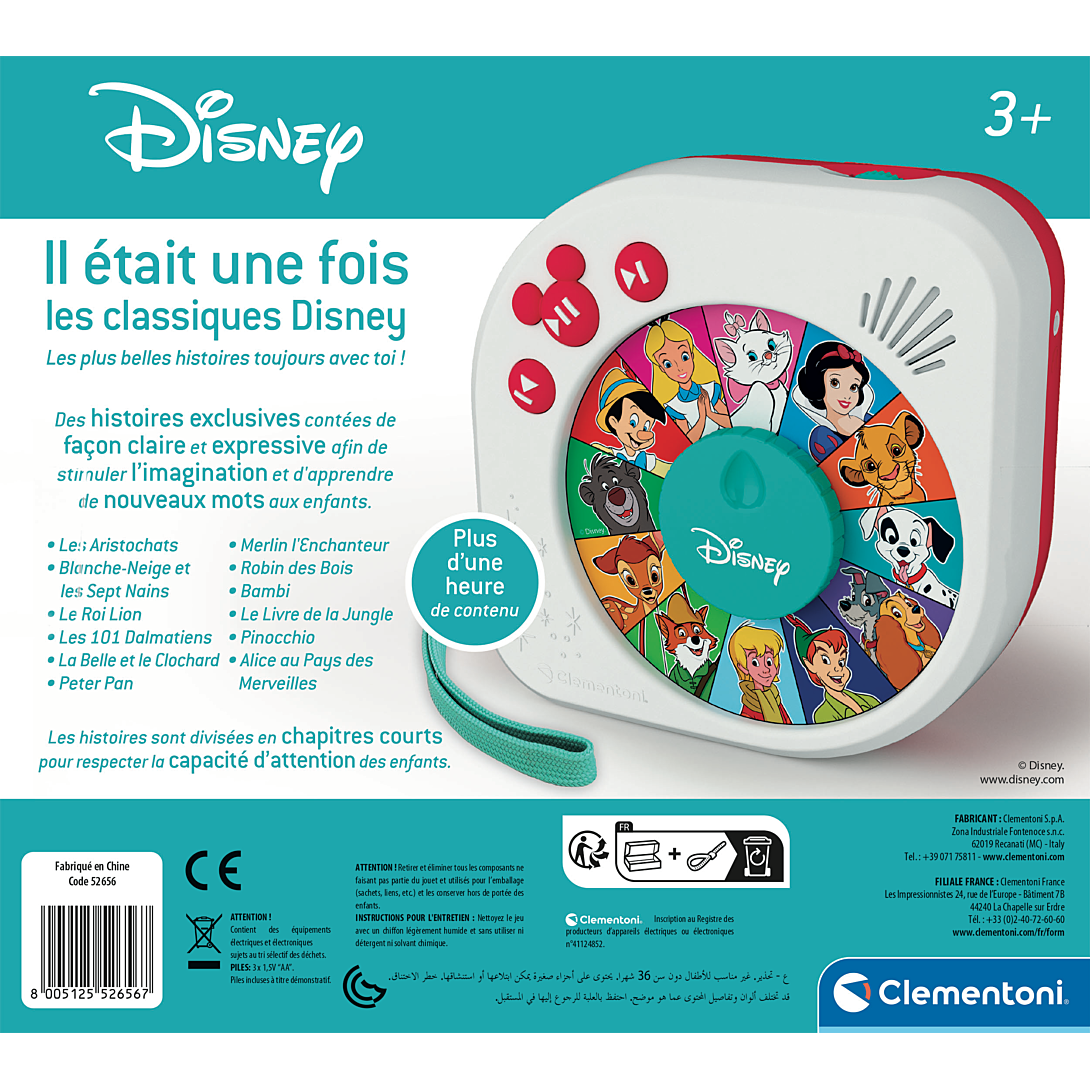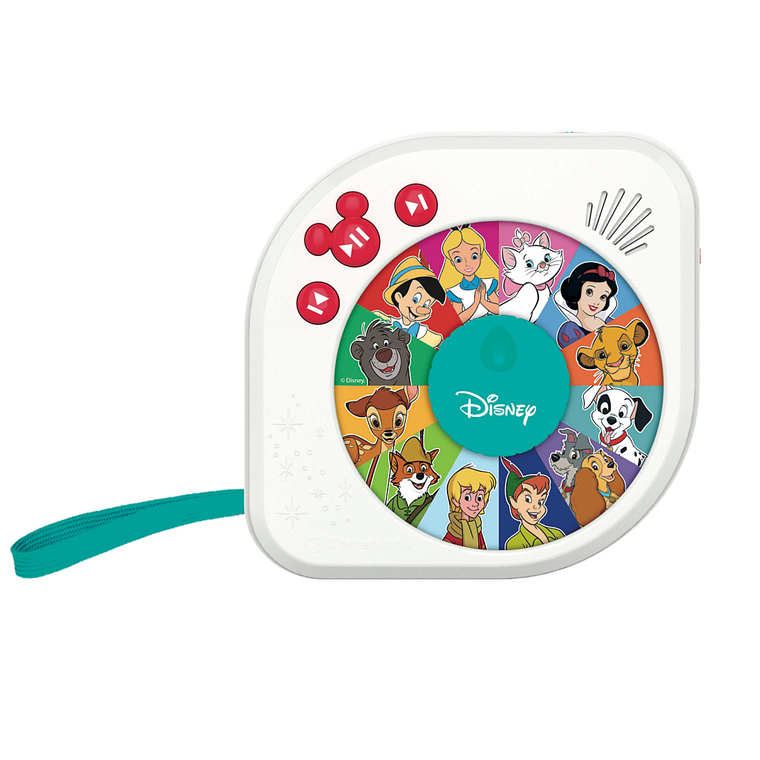 • Écoutez les plus grands classiques de l'univers de Disney réunis dans ce conteur à emmener partout avec soi ! • Retrouvez les héros préférés des enfants dans leurs aventures : Le Roi Lion, Pinocchio, Blanche-Neige, Les Aristochats, Peter Pan... • Tournez le sélecteur sur le personnage de votre choix, appuyez sur le bouton Lecture… et laissez la magie Disney opérer ! • Un jeu idéal pour stimuler la capacité d’imagination des plus petits, l’écoute et l’attention.
